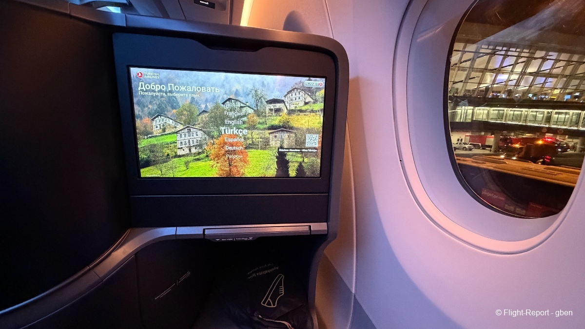 L'embarquement est terminé, annonce du cockpit pour le vol puis on repousse, les consignes de sécurité sont lancées en turc et en anglais.