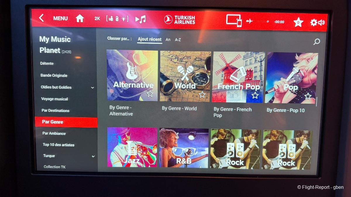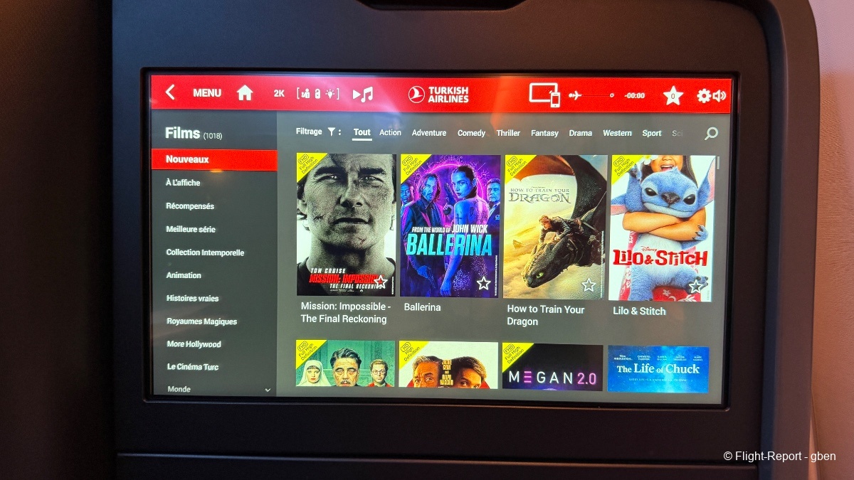 L'IFE est toujours aussi complet, je cherche un film pour m'occuper durant le vol. J'apprécie les setlist musicales également.