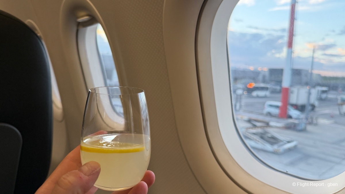 La boisson d'accueil est proposée rapidement par le steward.