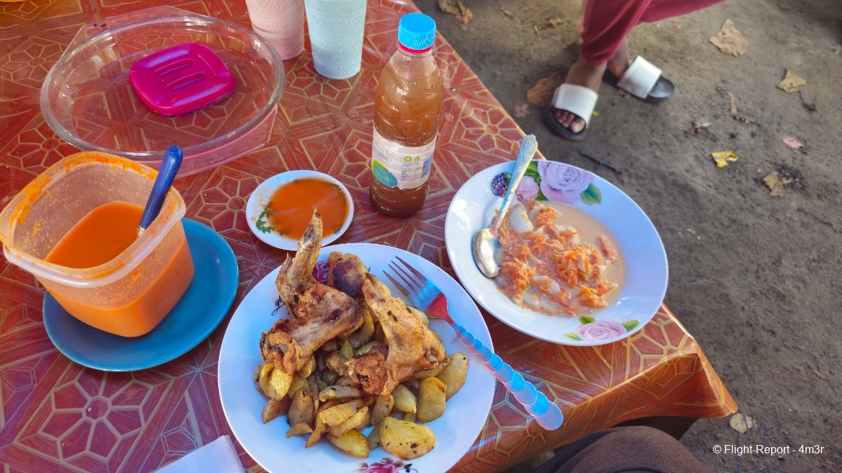 J'avais un peu faim, je me suis pris un samboussa (pareil que les samoussas dans d'autres régions mais en version comorienne), une crêpe sucrée & Fanta orange