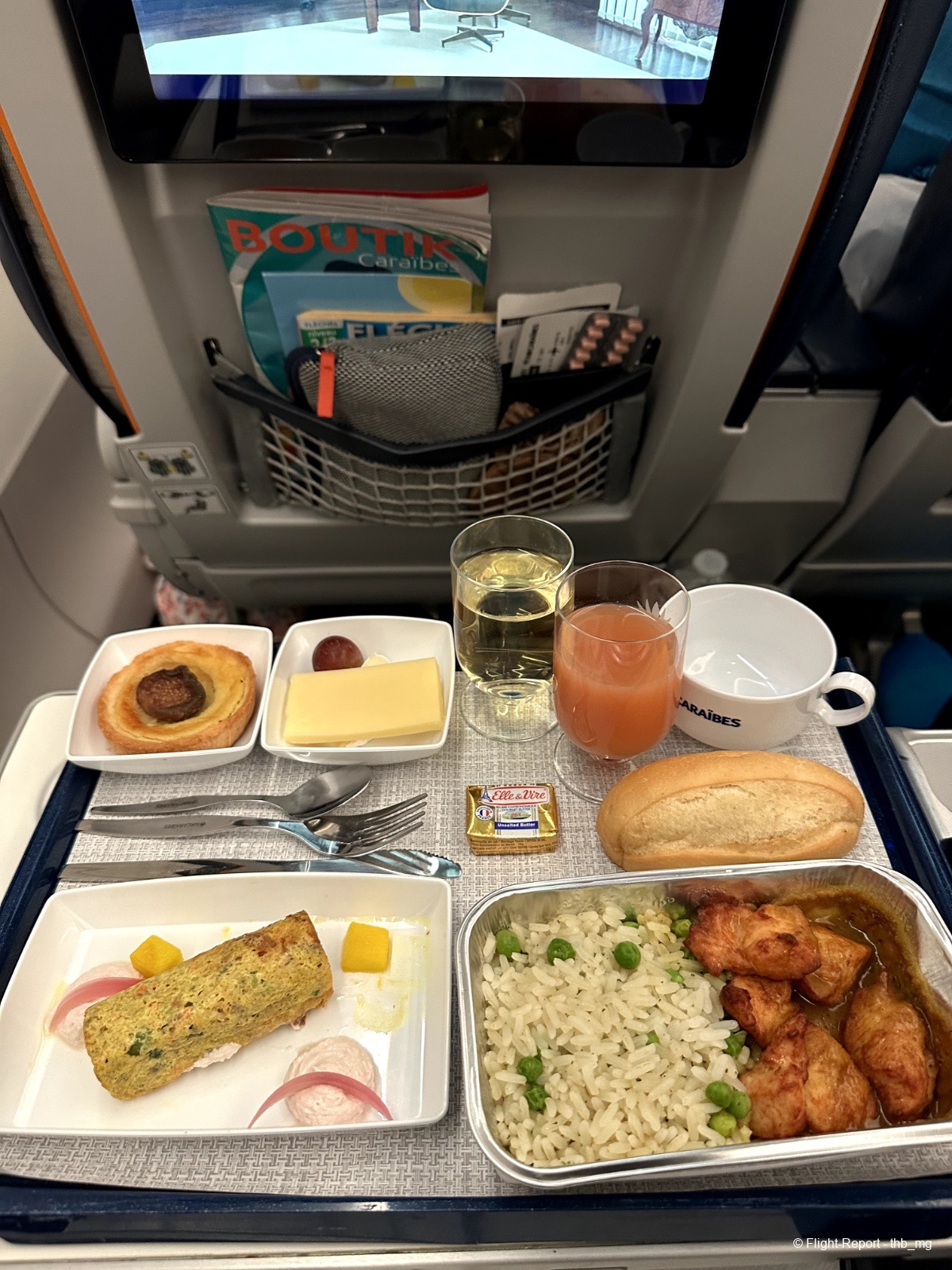 Le plat principal étant le même entre la Premium et l'Eco, l'équipage passe prendre nos commandes pour s'assurer que nous ayons le plat de notre choix.