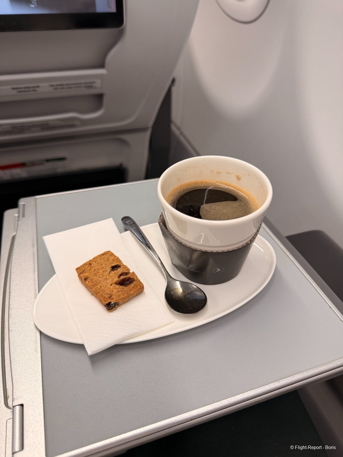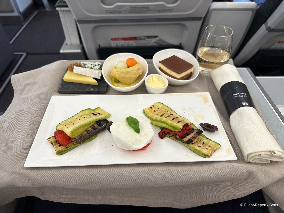 Une fois dans les airs, le service se met rapidement en place. Le menu nous ayant été distribué avant le décollage et notre commande prise dans la foulée, nous sommes servis très rapidement.