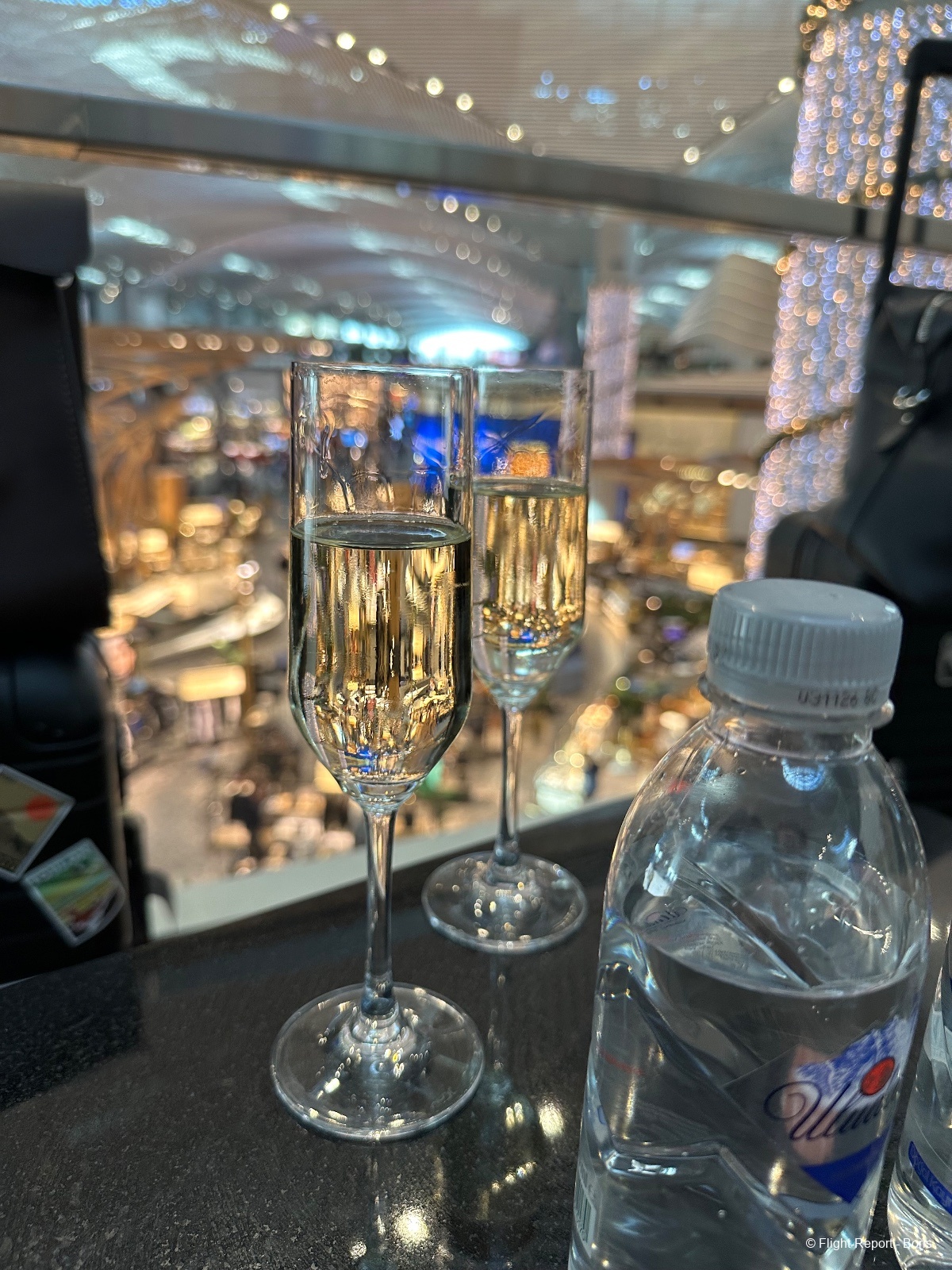 Nous terminons ce moment de détente par une coupe de prosecco, histoire de conclure agréablement notre passage au lounge, avant de nous diriger tranquillement vers la porte d’embarquement pour la dernière étape de ce voyage.
