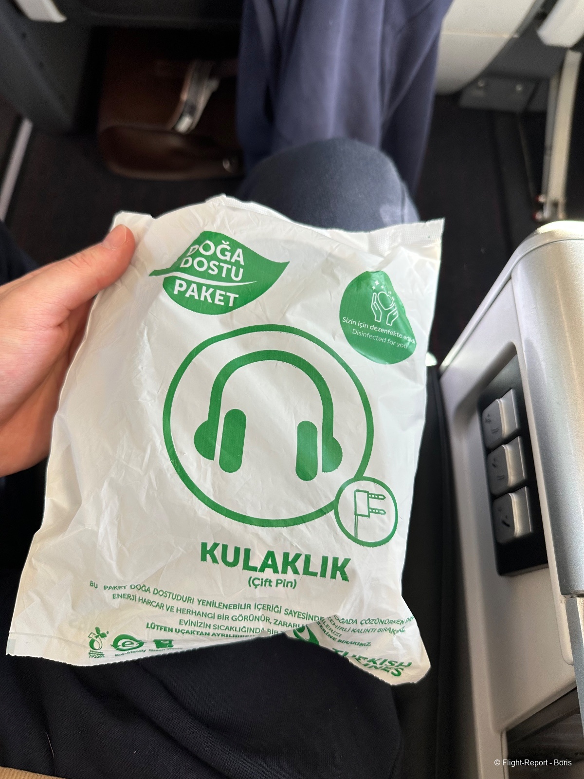 Côté casque, celui-ci est emballé dans un plastique recyclable. La qualité est logiquement inférieure à celle proposée sur le long-courrier, mais il fera largement l’affaire pour ce vol court.