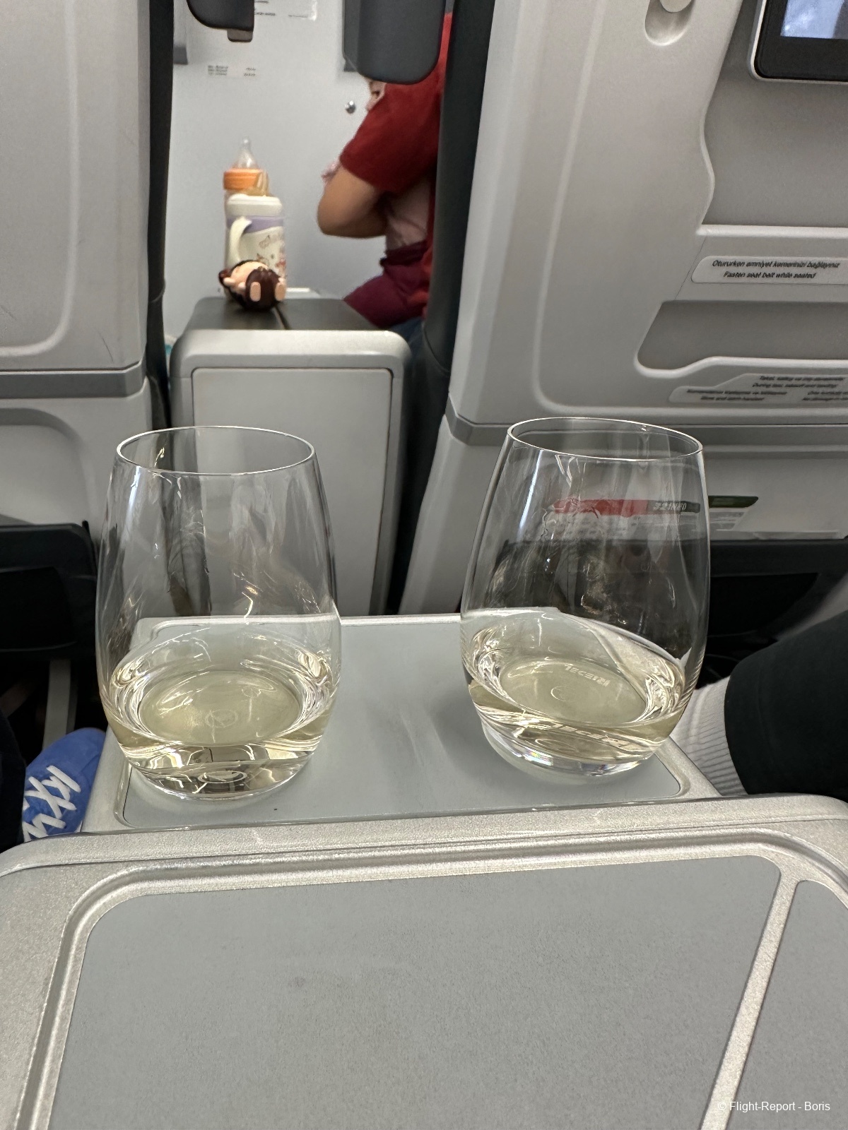 Une fois l’embarquement terminé, nous recevons nos verres de bienvenue. Comme à l’accoutumée chez TK, le choix est classique.