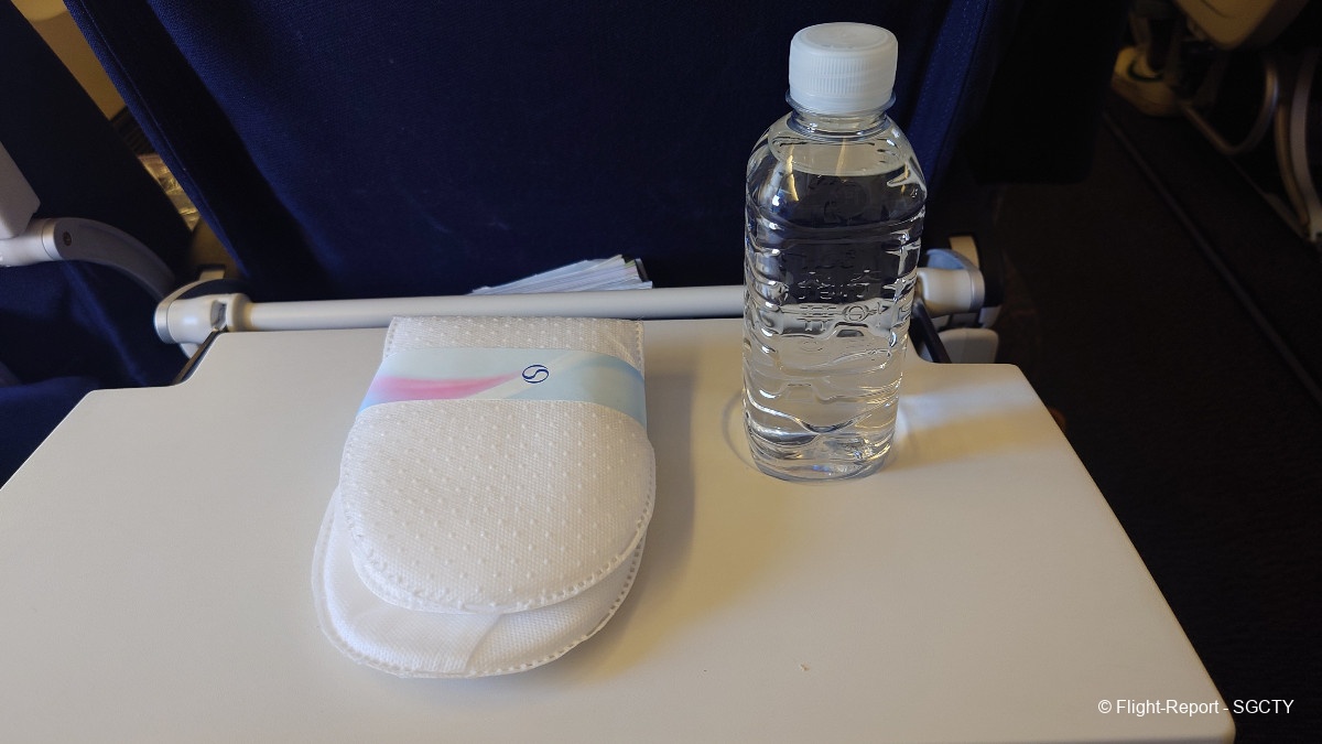 Korean Air gave each economy class passenger a pair of single use slippers which are of inferior quality, but made for a good souvenir that I took with me. A water bottle was also given to each passenger at their seat. The push for greener packaging made Korean companies drop their plastic labels, which is a good move in my opinion!