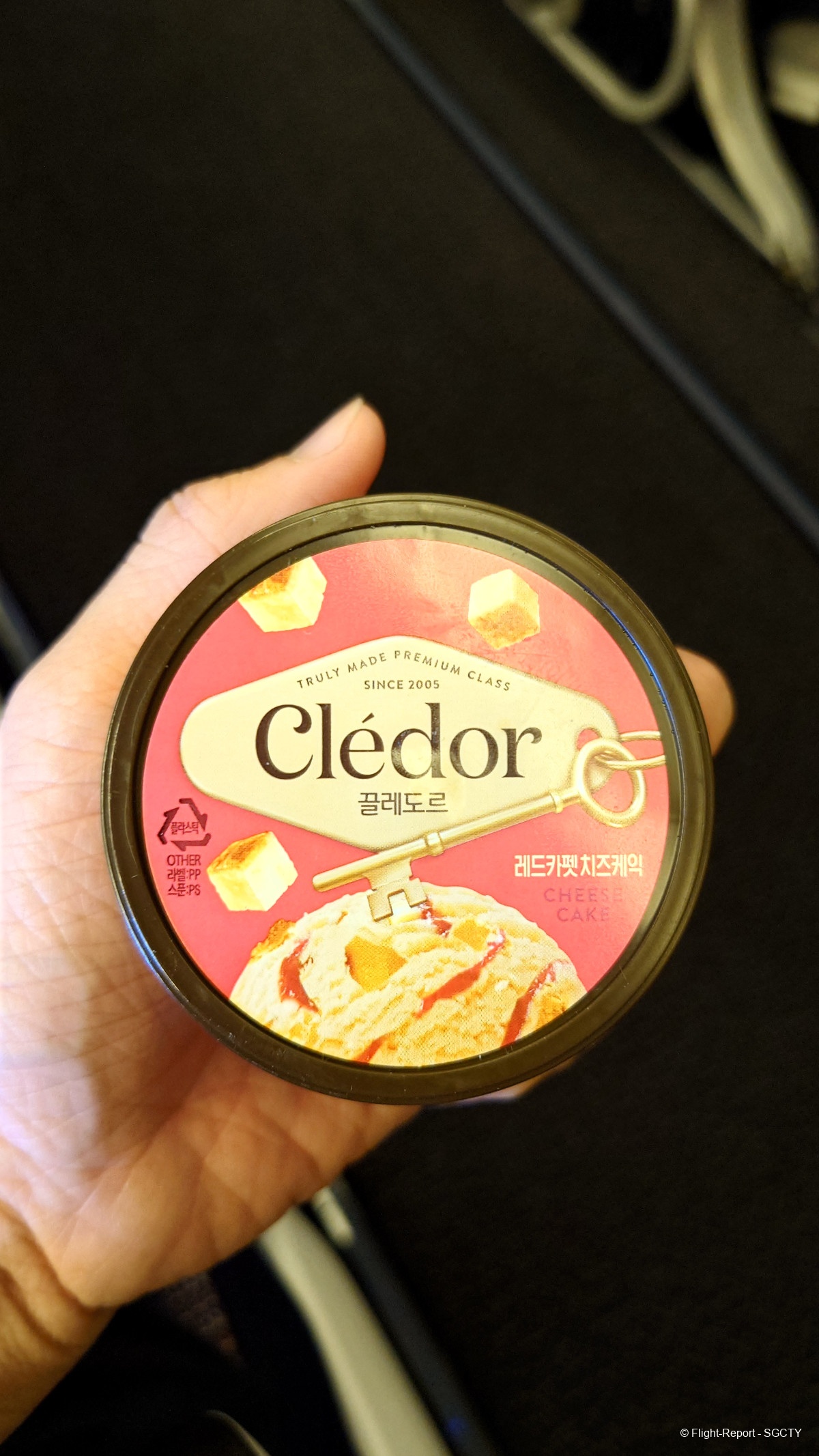 After the meal, the crew came around with Cledor cheesecake ice creams. A stewardess put the basket of ice creams in front of me, so I helped myself to it, but I returned the ice cream as my special meal did not come with ice cream. However, the stewardess said 'check remaining' and walked away.