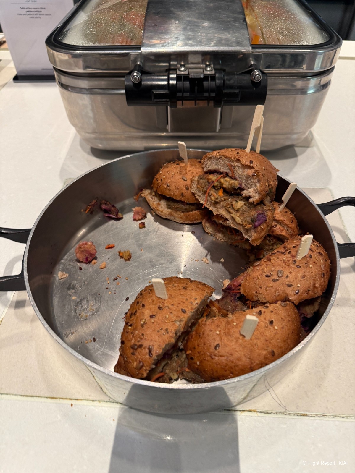 La différente préstation en meal et beverage dont le fameux roti de dinde et le burger vegan.