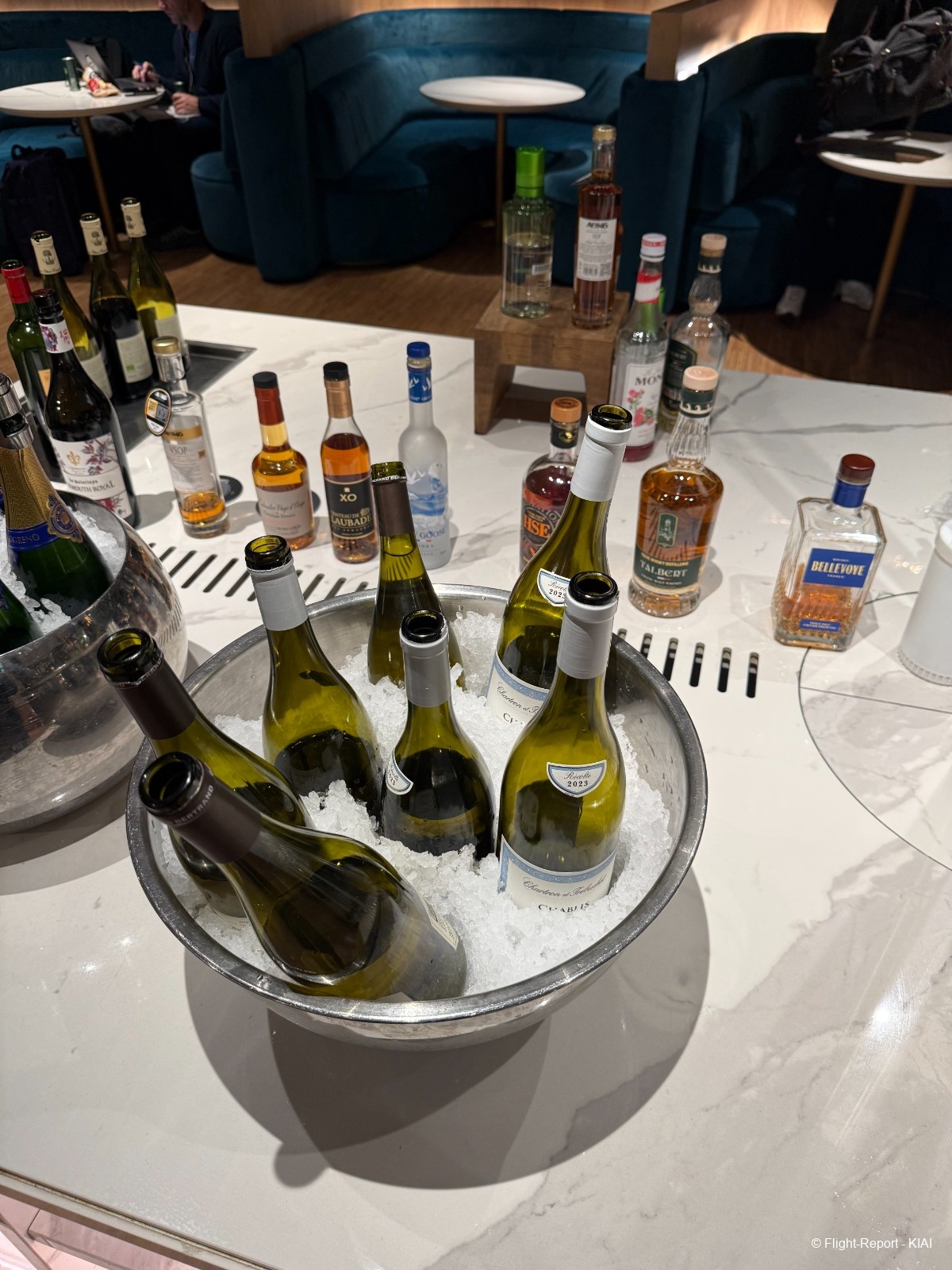 Quelques instants après le décollage, un PNC me sert un verre de bienvenue, mais je préfère opter pour de l'eau, pour plusieurs raisons (et par respect pour mon voisin âgé).