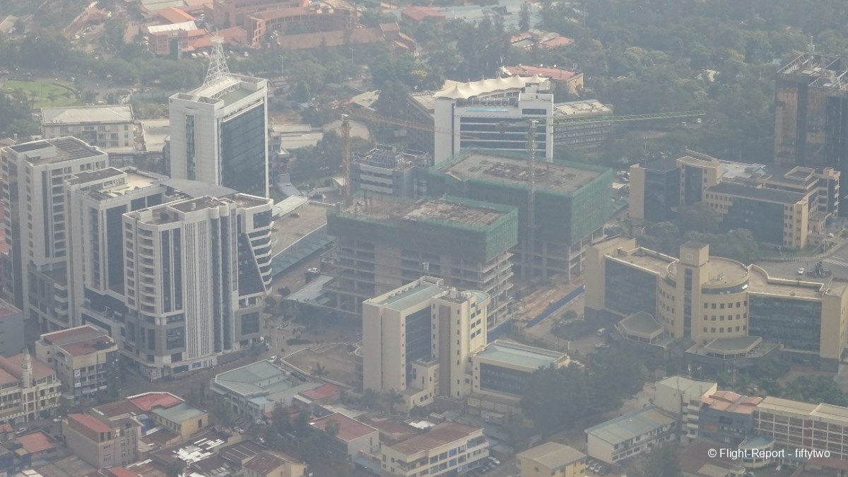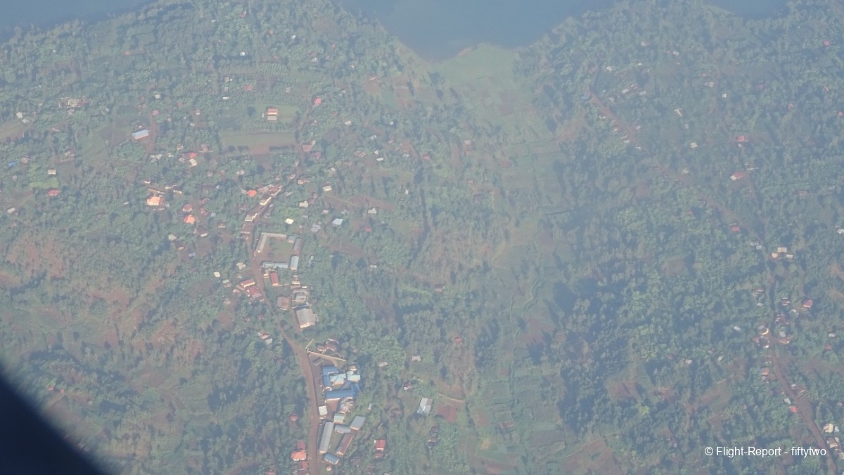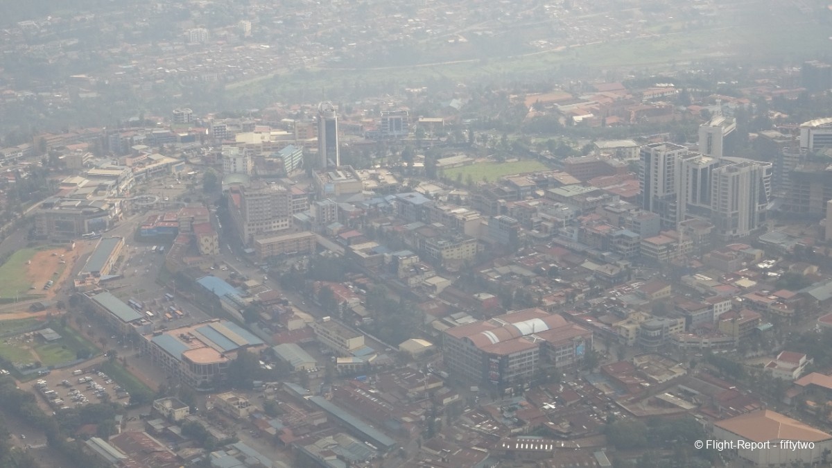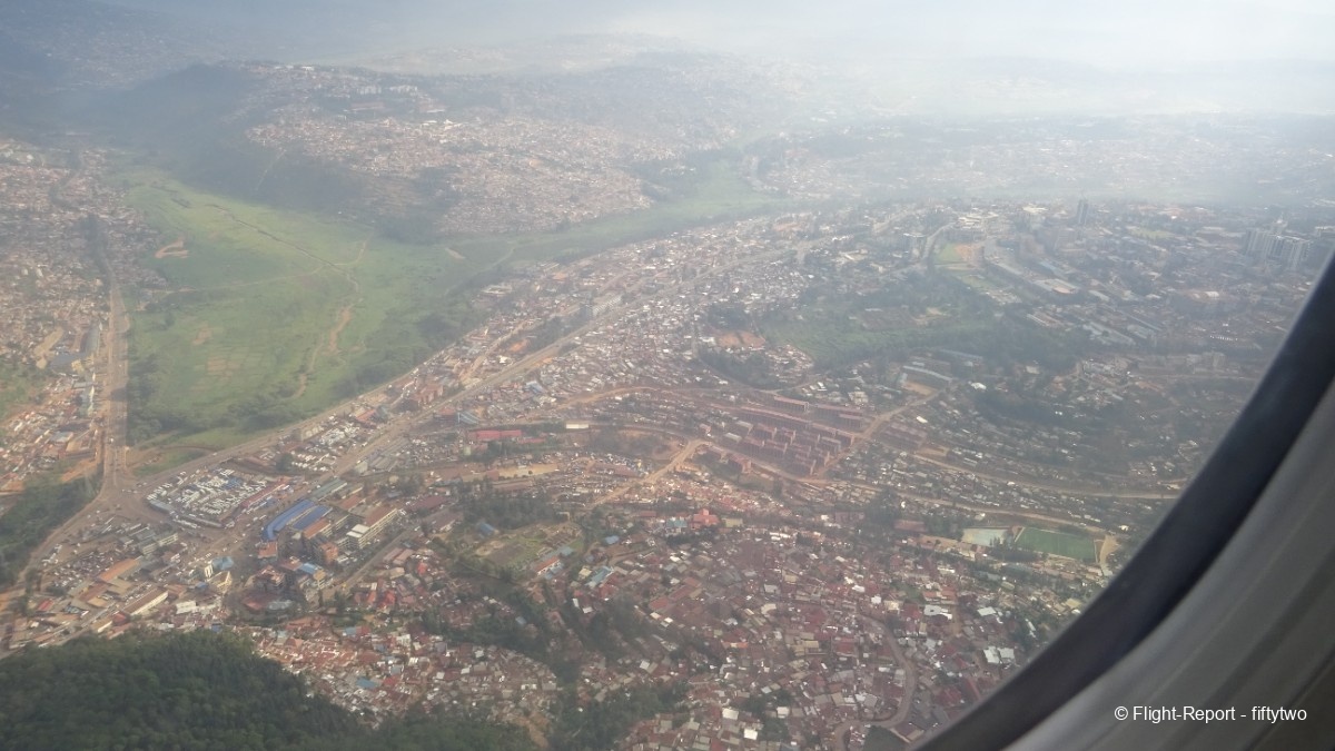 Cela sent la fin du vol donc je profite des derniers instants pour profiter de la vue , je n'en ai pas souvenir mais je ne crois pas avoir vu de riviere ausi large dans la ville de kigali , donc nous ne sommes pas encore arrive