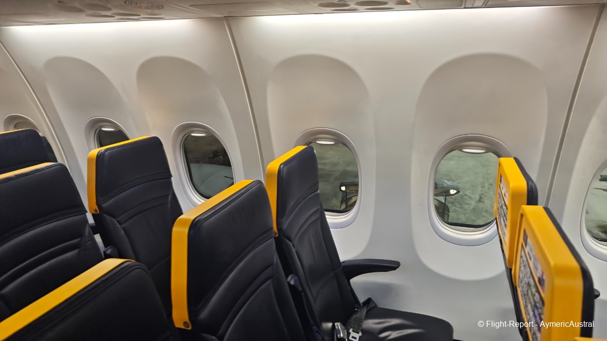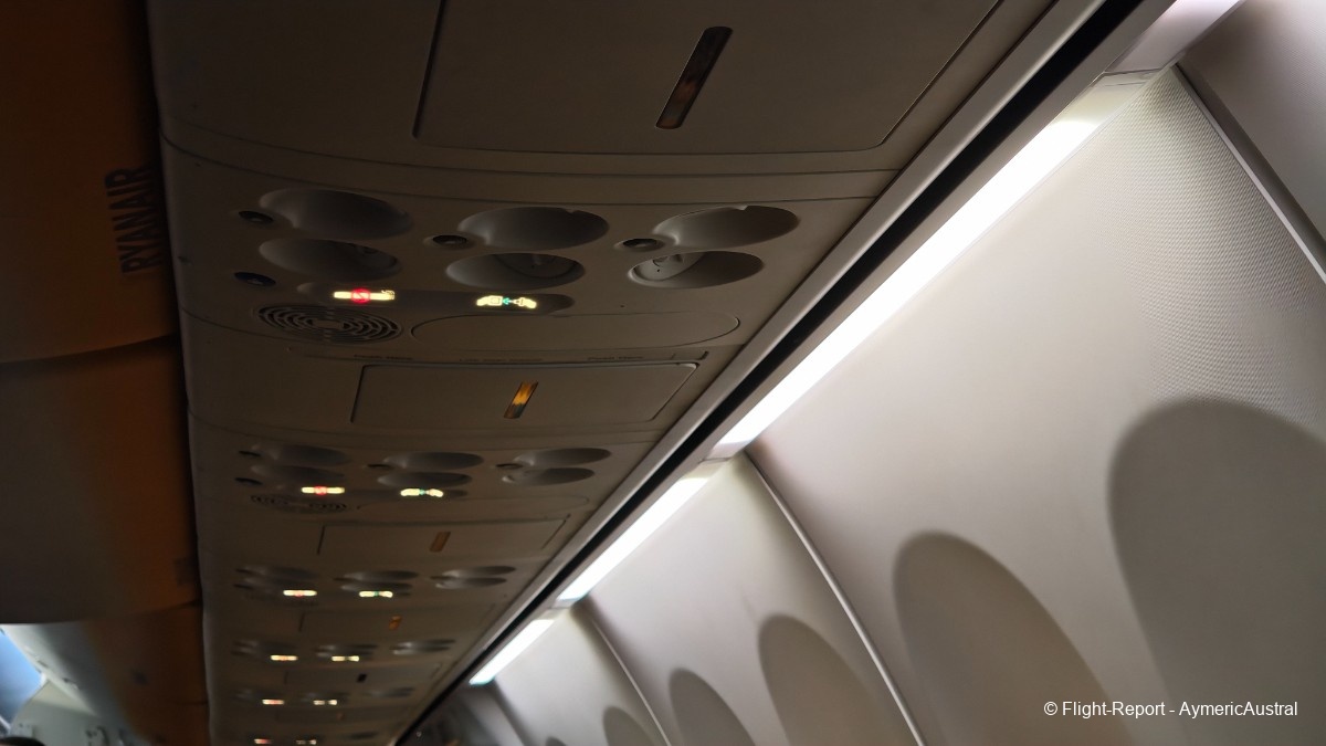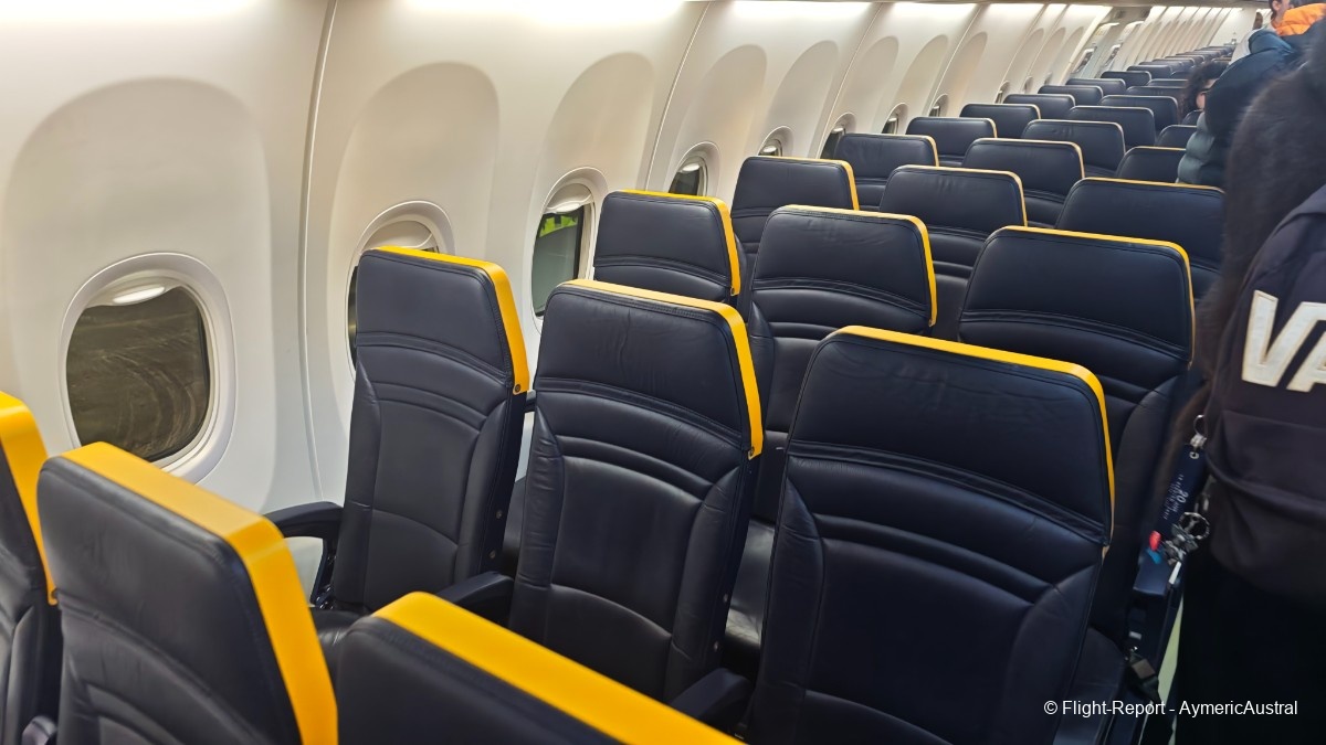Bienvenue à bord de ce B737 MAX 8-200, une configuration haute densité créée pour Ryanair. Avec cette config, la compagnie peut accueillir jusqu'à 197 passagers, contre 189 pour la version classique. Les sièges restent les mêmes que sur les B737-800NG, une cabine classique en 3-3.