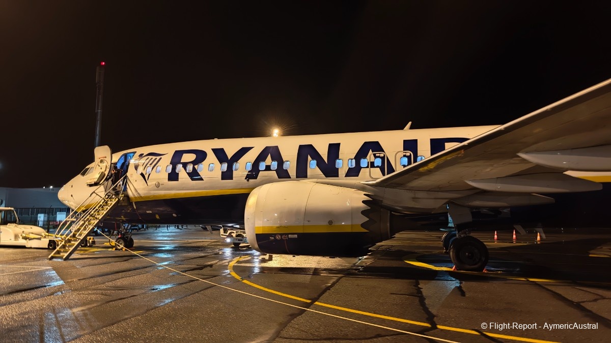 Et voici notre taxi du jour : EI-IHJ, un jeune Boeing 737 MAX 8-200 âgé de 2,6 ans. Il est entré en service en juin 2023 chez Ryanair. Moi qui étais si impatient de tester le B737 MAX, ce jour est enfin arrivé !