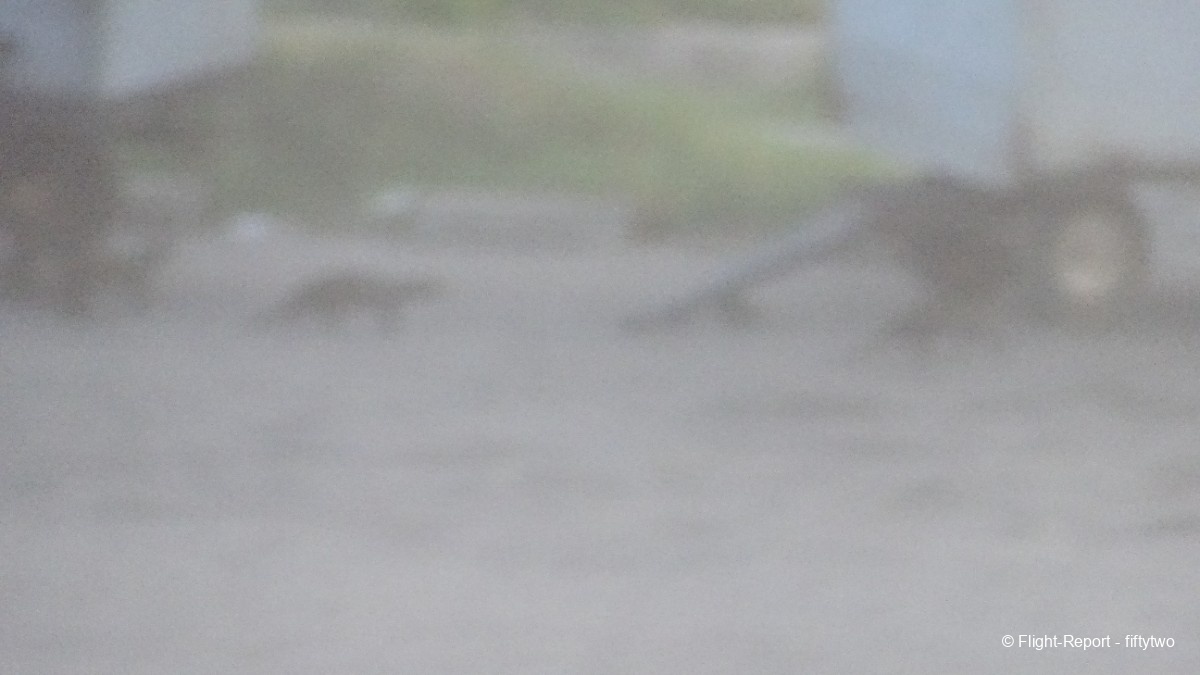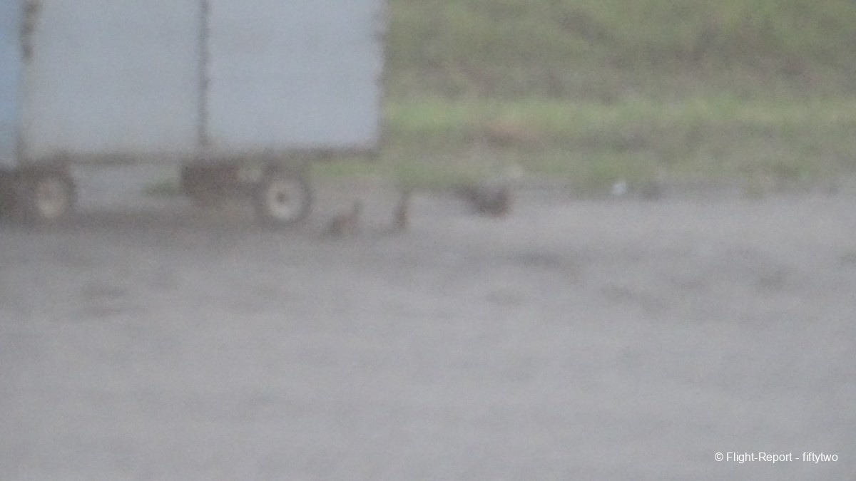Au loin sous des chariots a bagages je vois des petites formes se deplacer , malheureusement la vitre ne m'aide pas a prendre des photos claires , mais je pense que ce sont des mangoustes qui surement vivent a l'aeroport