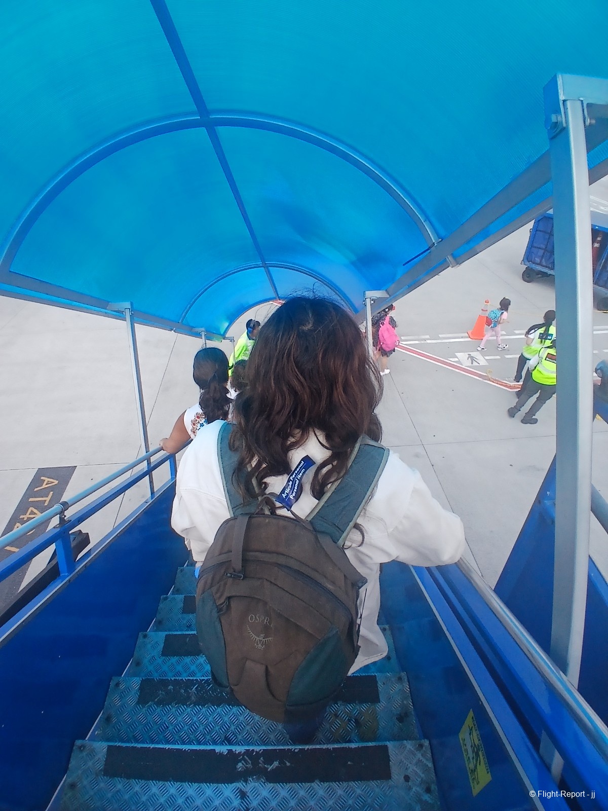 Et au moment d entrer dans l avion c est le bazar complet comme à l'aller! A ma place une personne était déjà installée, je parle espagnol donc elle m explique qu'elle souhaite rester avec sa fille mineure car oui jetsmart sépare même les enfants et les parents ! Pas de souci je prends son siège couloir deux rangées plus loin. Mais c'est le grand marchandage de place entre les passagers et c'est chaotique. Les hôtesses essayent d'arranger les parents et les mineurs en priorité.