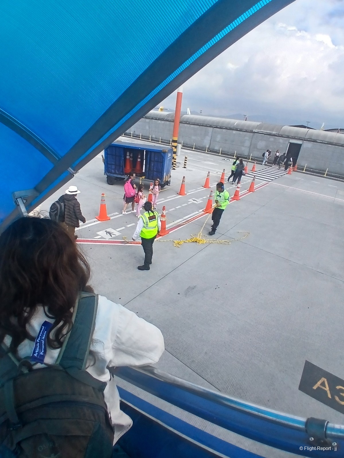 Embarquement à pieds, comme il y a deux vols pour bogota en même temps de jet smart il faut bien faire attention à la porte