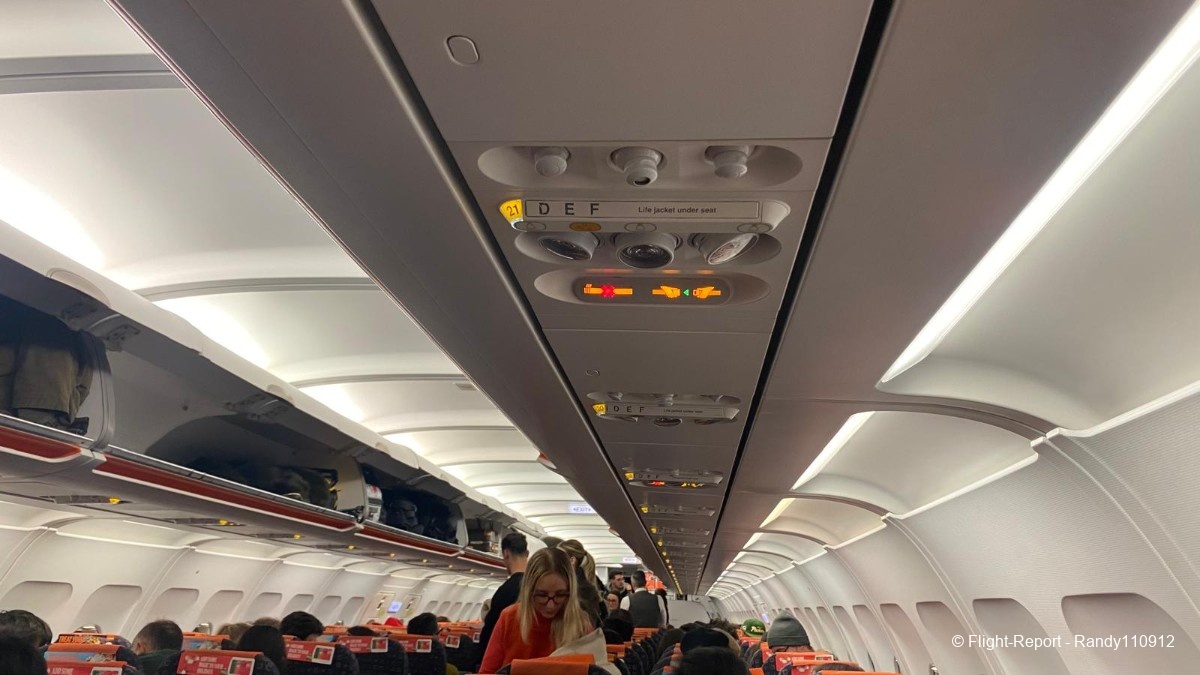 On s'installe tranquillement, le vol est quasi full, et le pas suffisant mais étant petit…