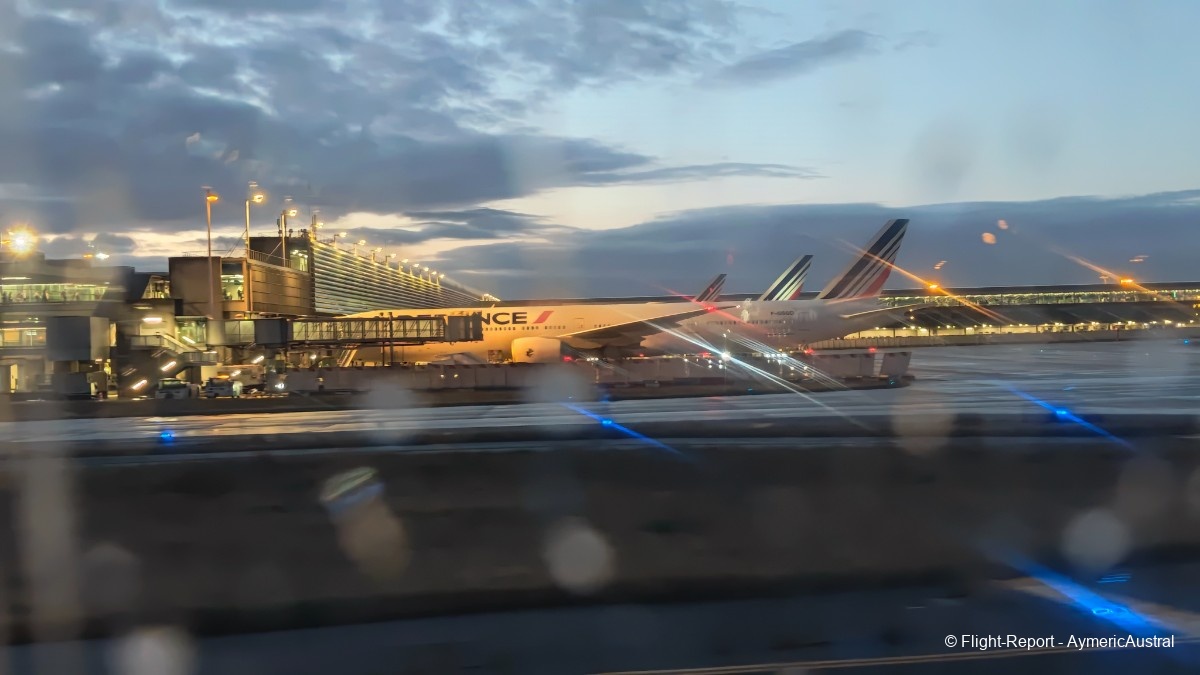 On longera les terminaux 2B/D/F/E afin de rejoindre la piste 26R. On aperçoit beaucoup d'appareils Air France qui arrivent des États-Unis ou qui préparent leur vol vers l'Amérique ou l'Asie. On croisera également cet A330neo d'Air Mauritius qui arrive tout juste de Maurice.