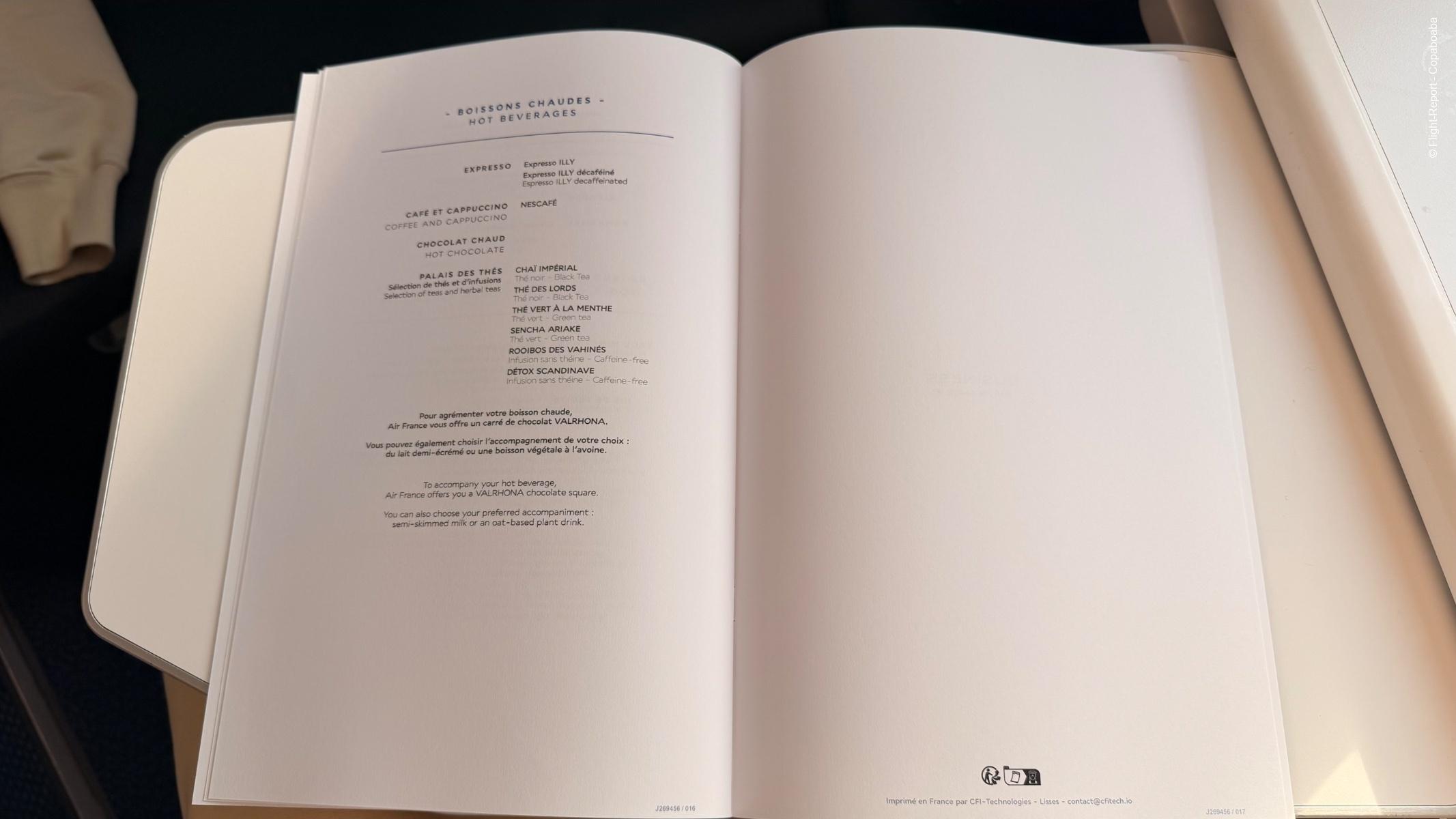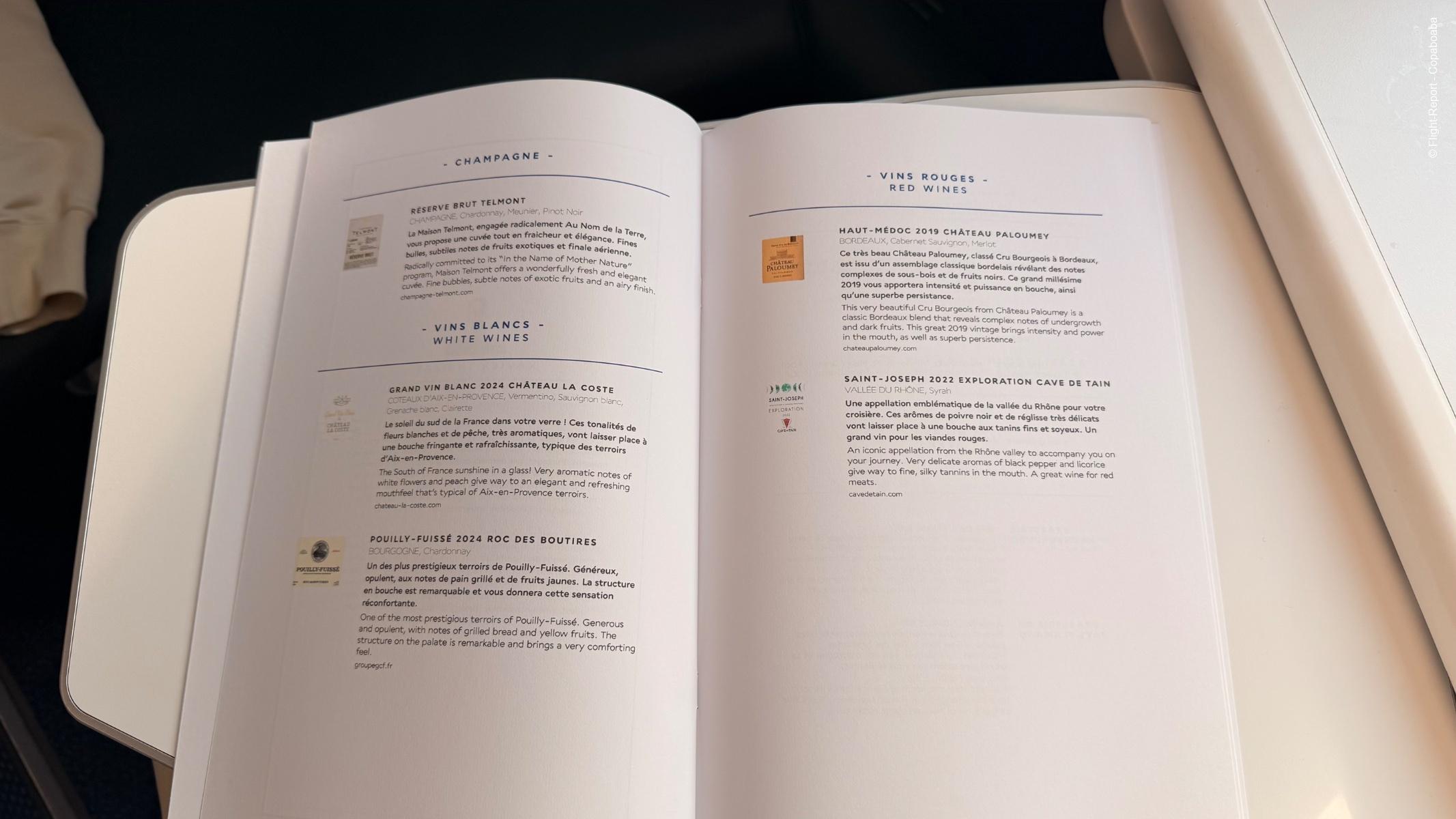 Voici le menu sur ce vol. J'avais précommandé les Saint-Jacques, ayant lu de bonnes critiques sur ce plat. La volaille était déjà présente en octobre et s'avère aussi un bon choix.