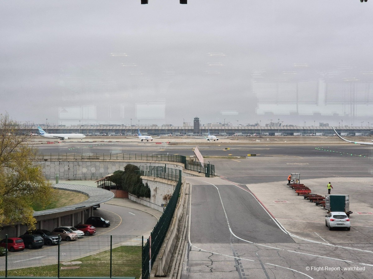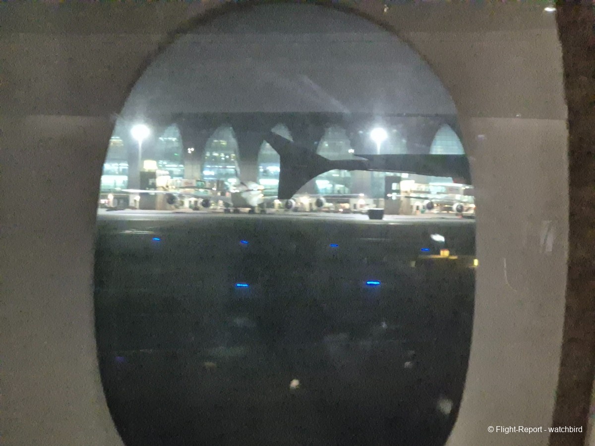 La vue depuis le hublot sur notre voisin de World2fly et vers le terminal.