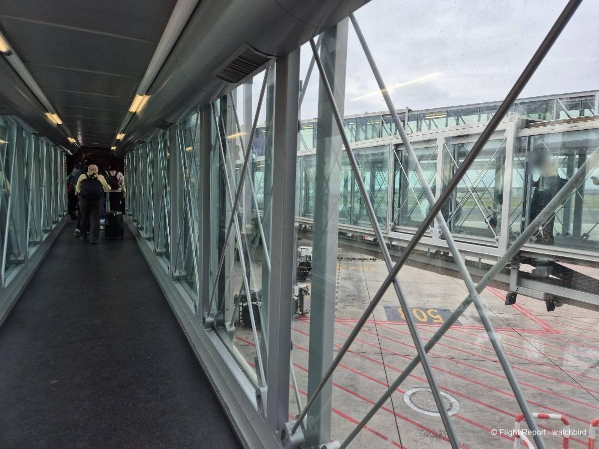 Nous prenons le chemin de la sortie moins d'un quart d'heure après l'arrivée en porte.