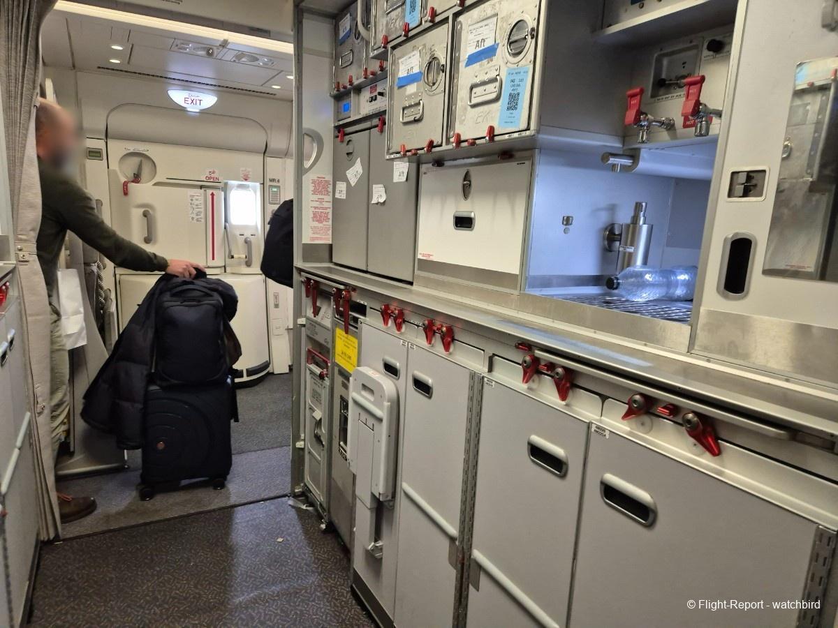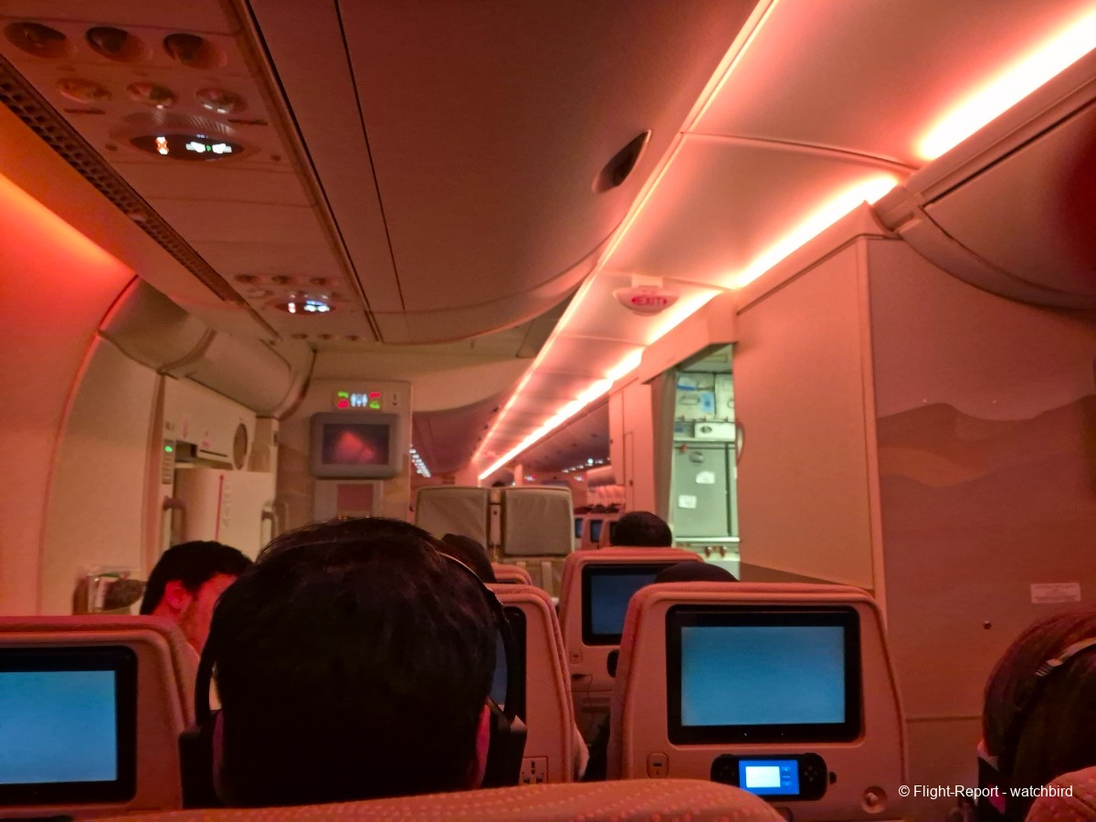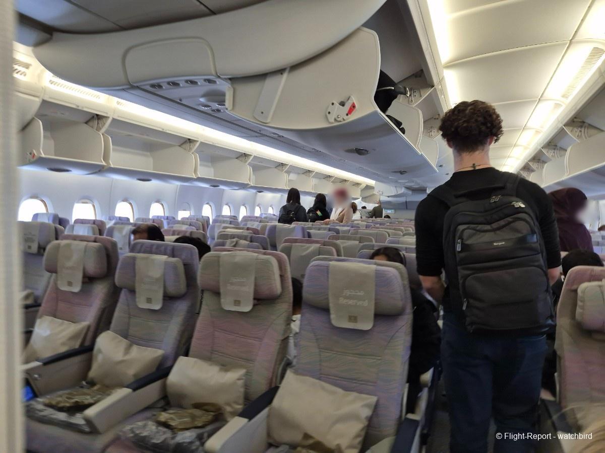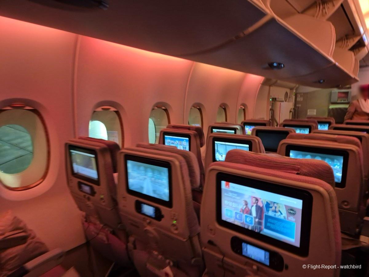 Comme j'avais pris un siège vers l'arrière de l'appareil on le traverse en entier. Ca permet de voir qu'il s'agit d'une version avec des sièges récents mais sans premium eco.