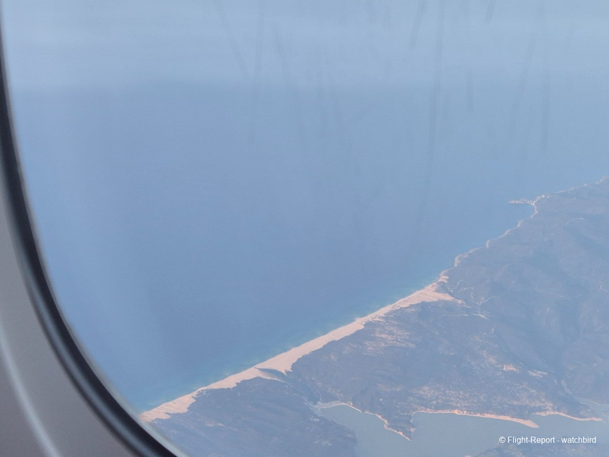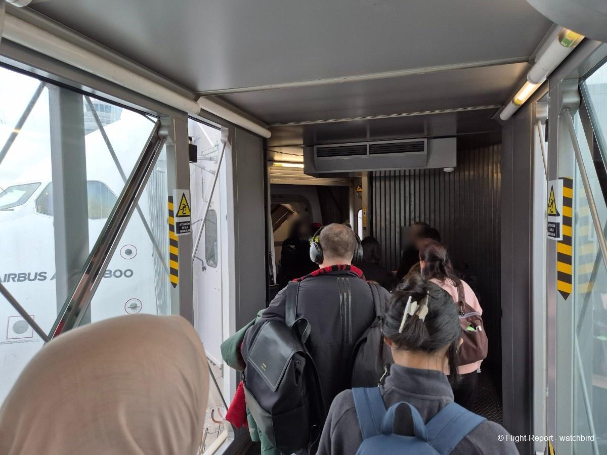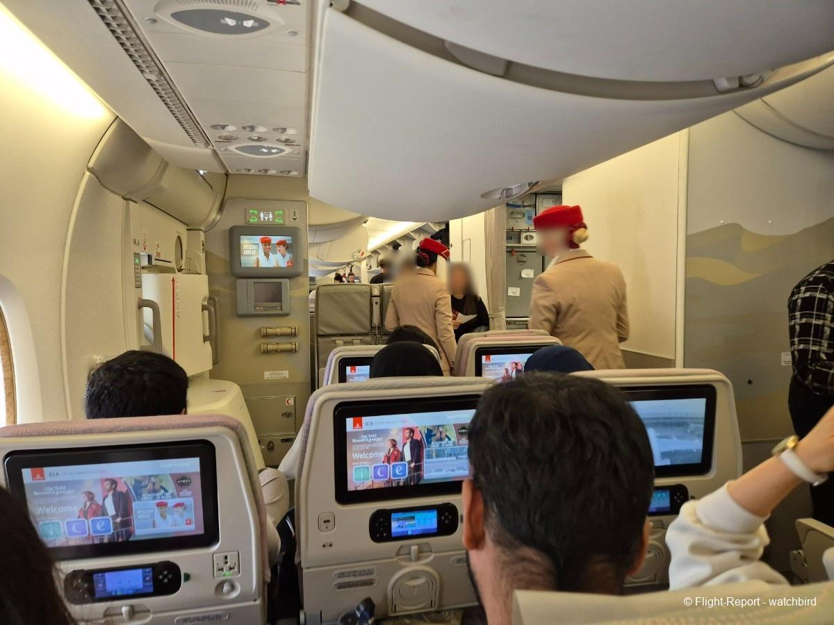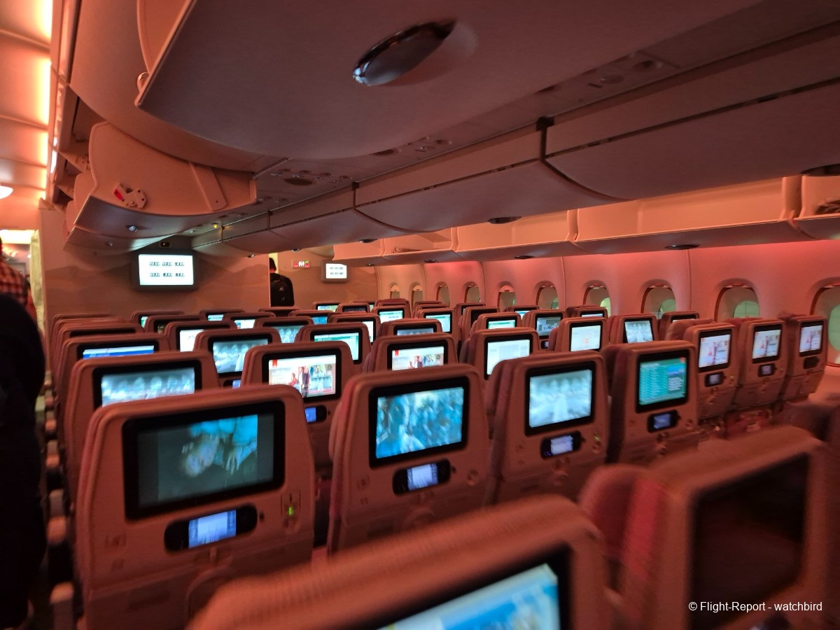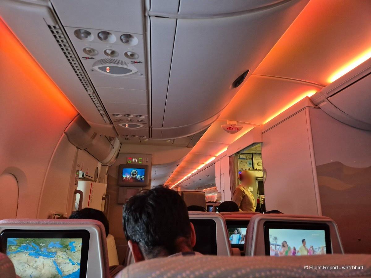 Comme j'avais pris un siège vers l'arrière de l'appareil on le traverse en entier. Ca permet de voir qu'il s'agit d'une version avec des sièges récents mais sans premium eco.
