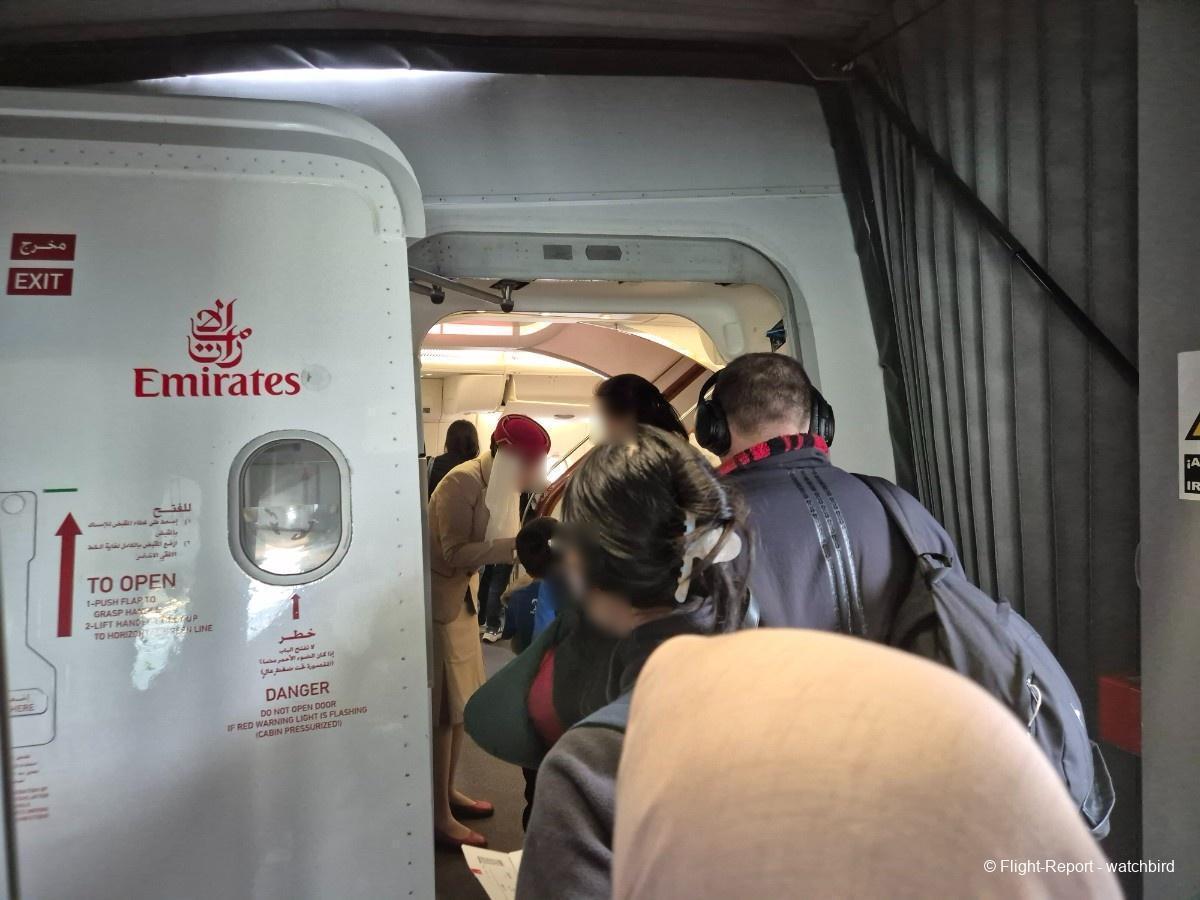Vers 13h les petits panneaux spéciaux pour Emirates se mettent en place… Autour de 500 passagers à embarquer !