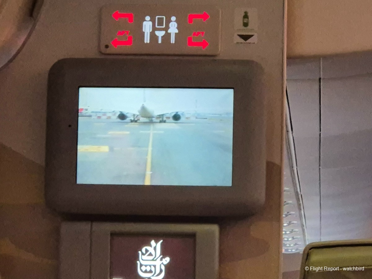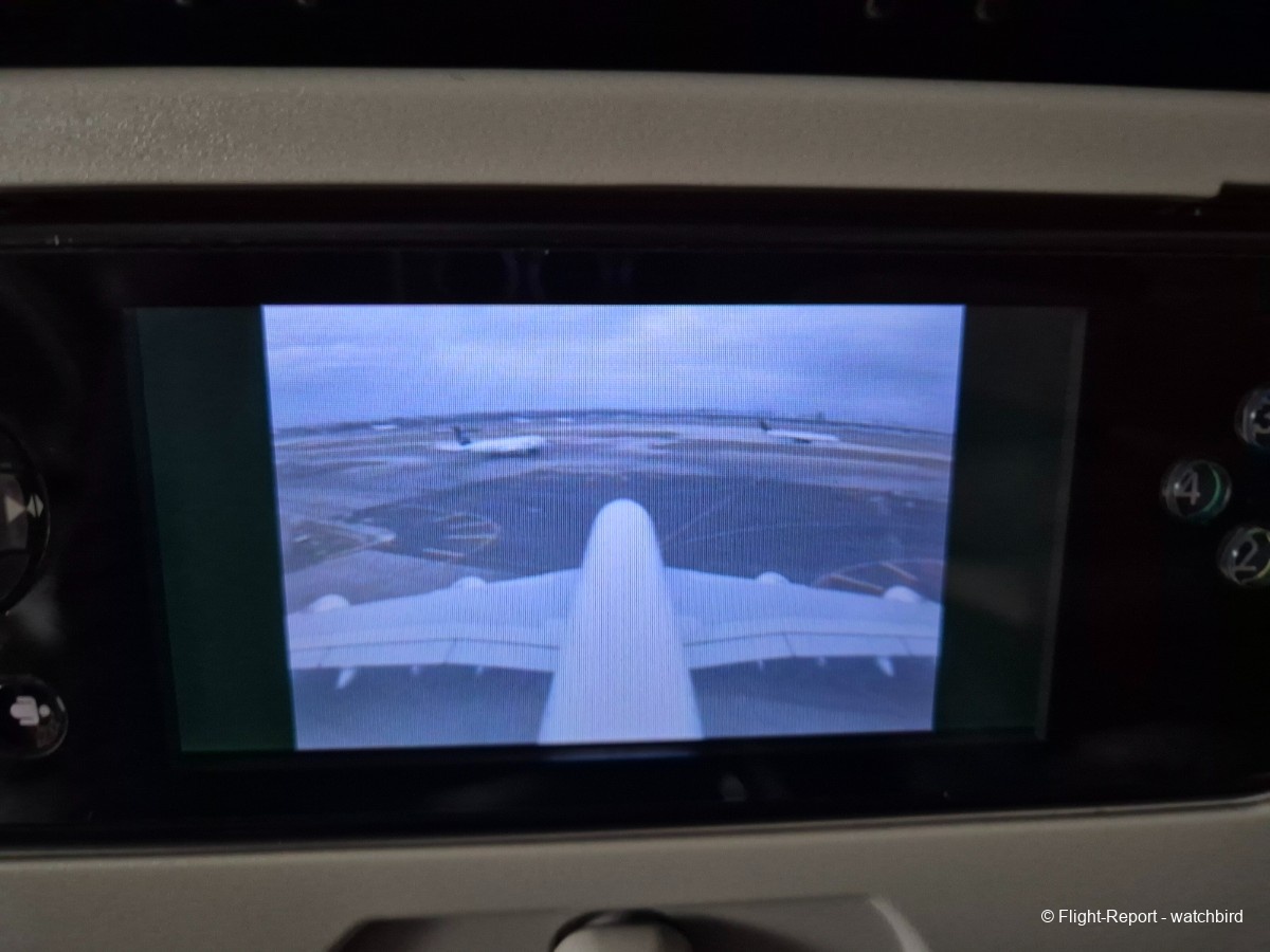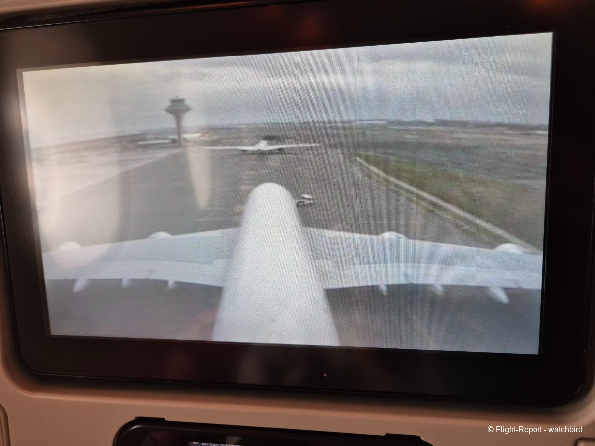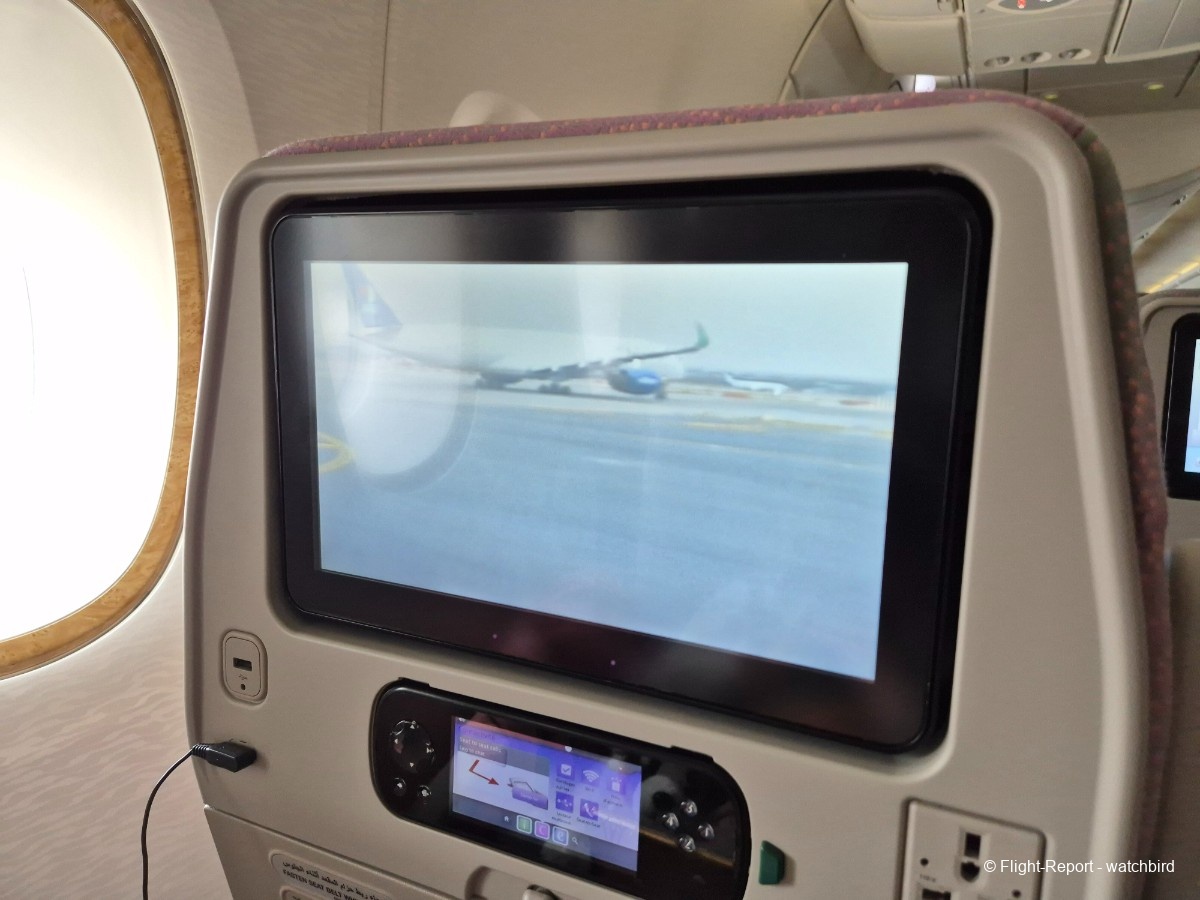 Me voilà installé, un peu plus de place pour les jambes, un peu plus de largeur aux épaules aussi par rapport à tous nos vols sur cette série ! Merci l'A380. On voit à la taille et qualité de l'écran que c'est plus récent que certains mais moins que d'autres.