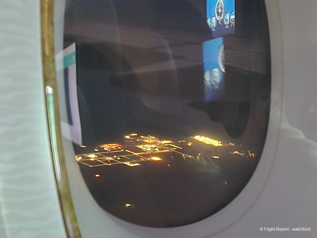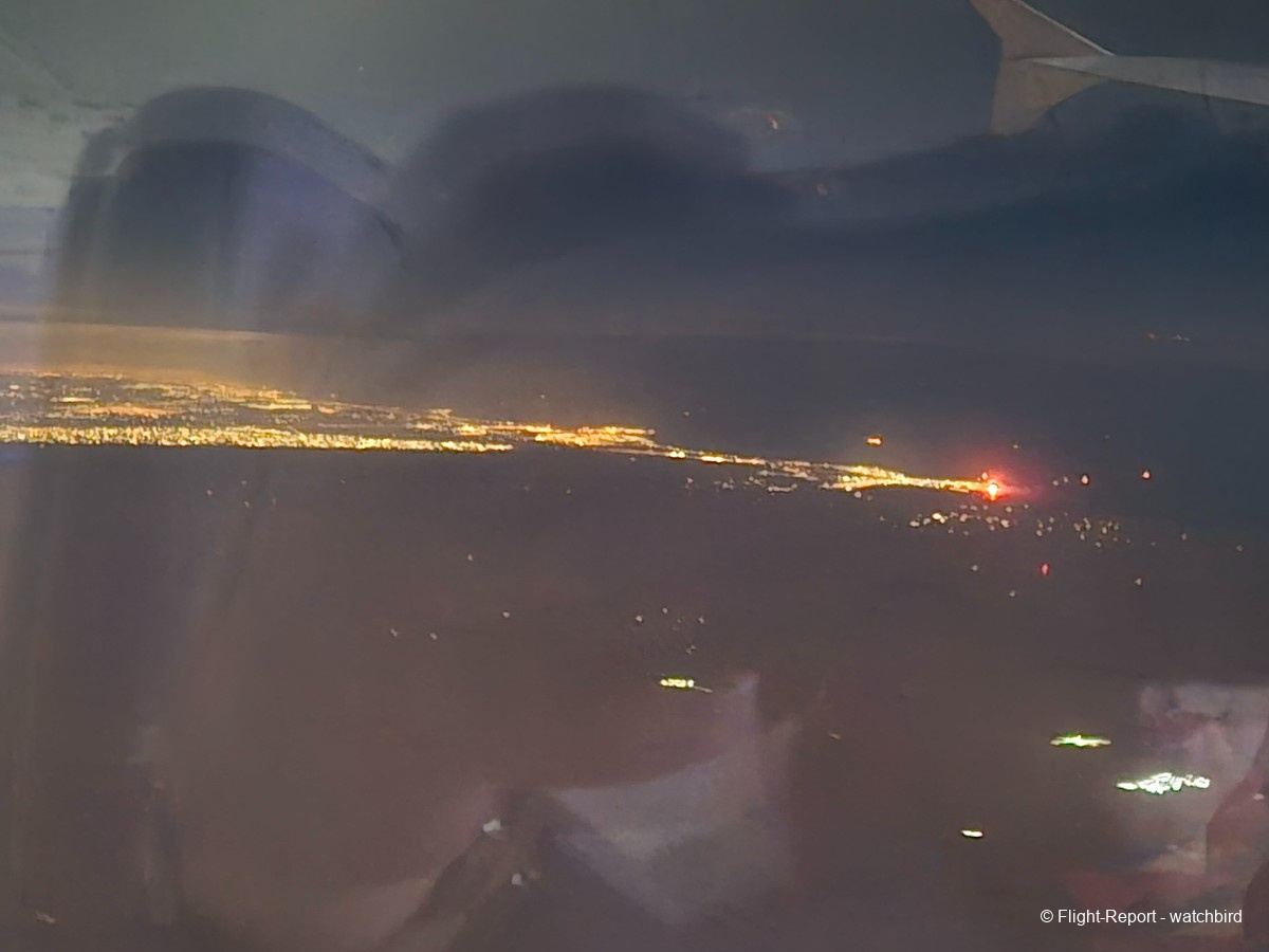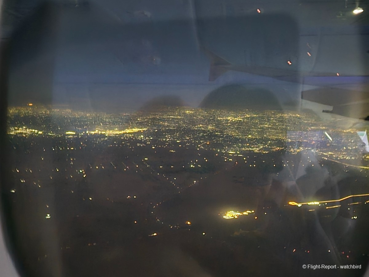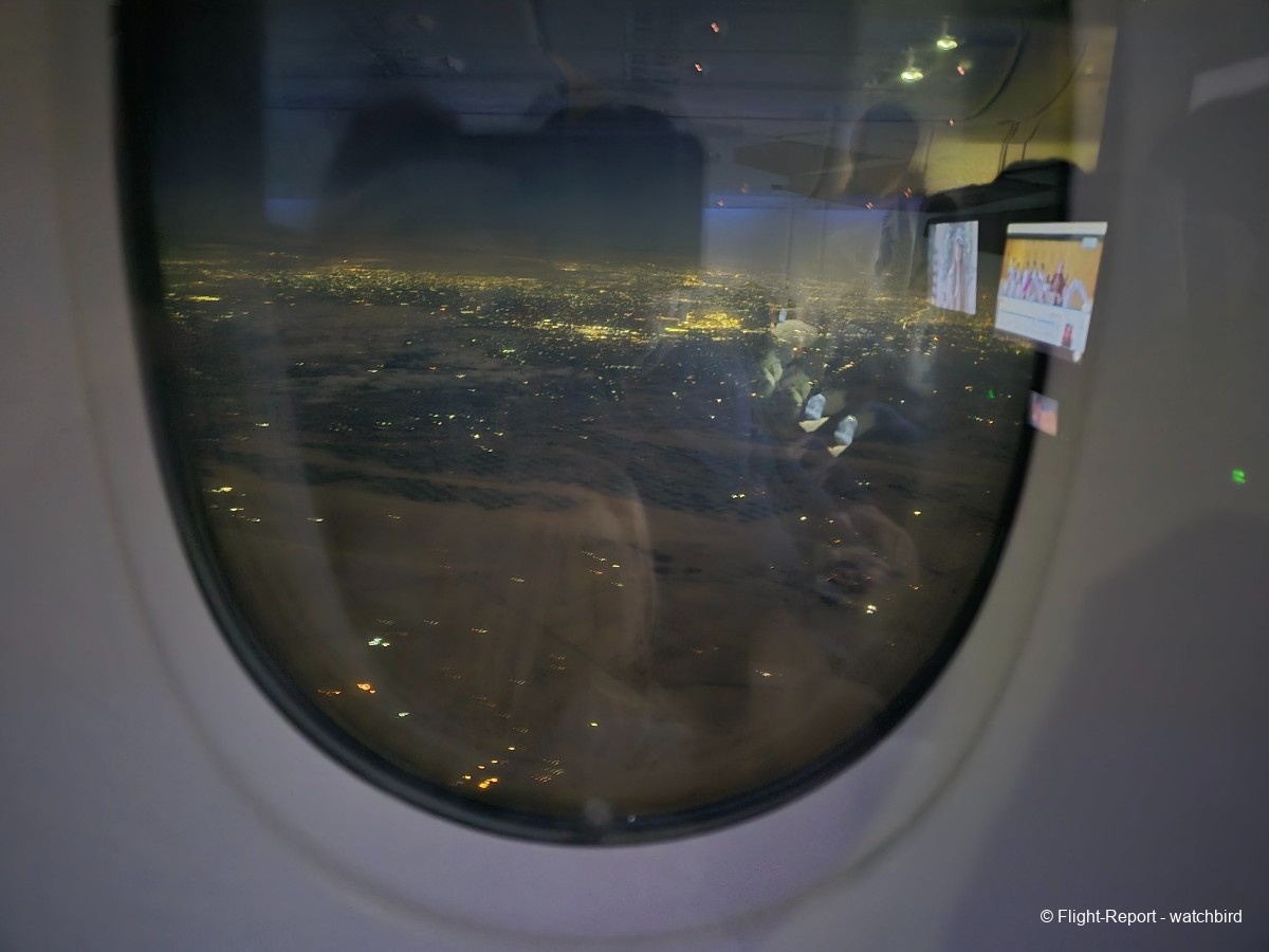 L'arrivée est proche après un petit demi-tour au dessus du désert. Pas besoin d'hippodrome d'attente pour nous ! Avec un atterrissage prévu à 00h31 donc quasiment à l'heure.