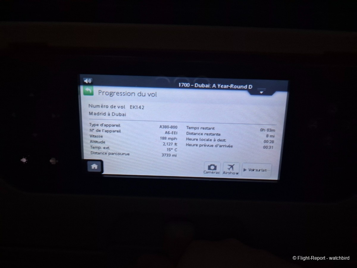 C'est la conclusion de cette série pour les vacances de fin d'année. Ce vol de retour à Dubai depuis Madrid a été assez simple à choisir, Il y a seulement un autre vol chaque jour avec Emirates. Celui-ci en A380 principalement de jour et l'autre en B777 principalement de nuit dans ce sens là. Du coup la combinaison A380 et vol de jour aura ma préférence.