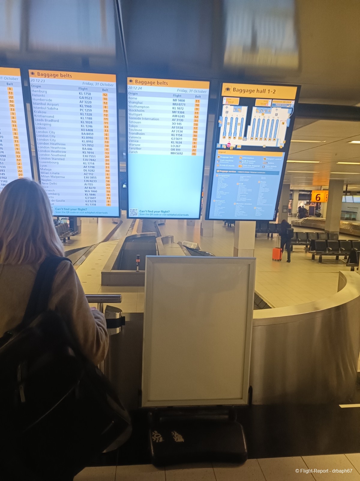 Nous atterrissons et sommes débarqué par Paxbus. Je serai admiratif de la fluidité à AMS. Nous récupérerons nos bagages en 15 min avec un FIDS dédié aux bagages et qui indique la destination et l'étape de façon plus clair que dans certains autres aéroports.
