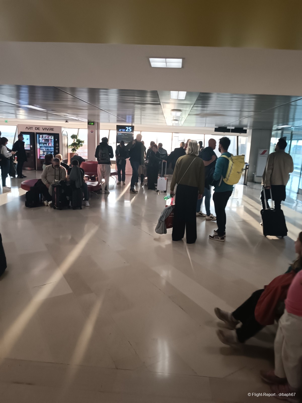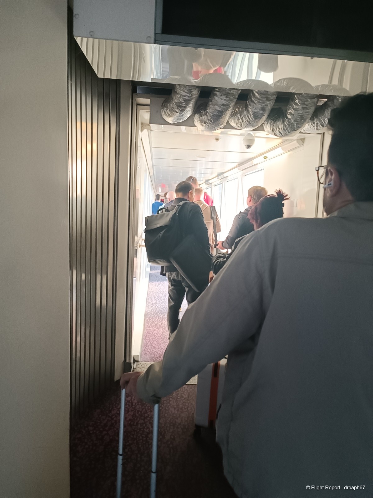 Lors de mon passage au Salon, nous aurons un avertissement selon lequel le vol à 1h45 de retard. Je serai en coup de fil à ce moment précis mais la suite des évènements va me surprendre (en bien). En effet à l'heure théorique du départ retenti dans le salon une annonce d'un embarquement imminent malgré le retard indiqué par le FIDS encore et toujours. Direction donc la porte d'embarquement.