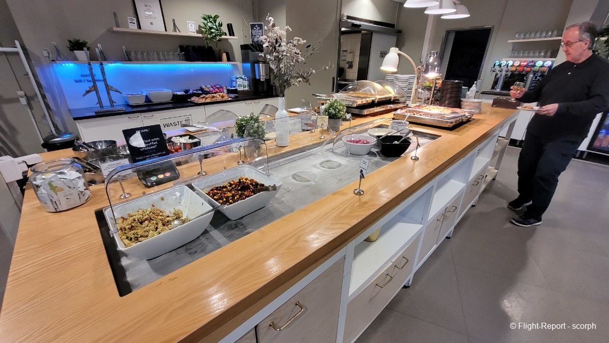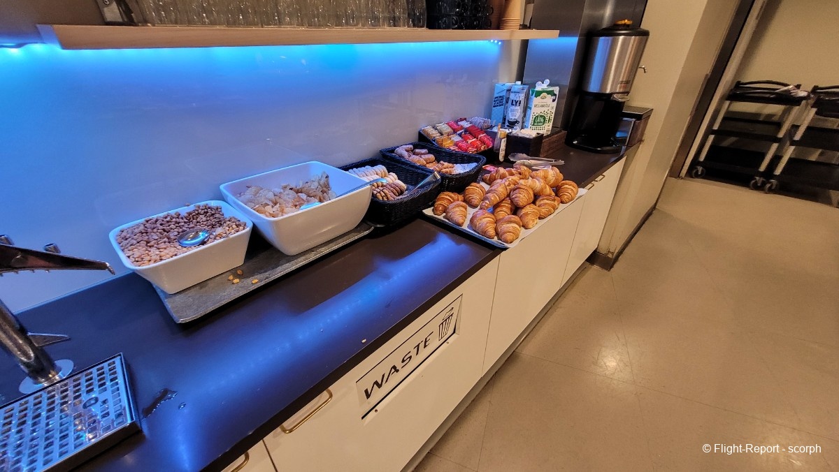 Le lounge est plutôt de bonne taille mais avec une disposition assez étonnante faite d’alcôves chacune sur un thème différent et disposant souvent d’un mobilier différent ce qui est plutôt déroutant. Le lounge n’est pas vraiment à la pointe niveau divertissement avec une télé diffusant les infos en direct mais dispose d’une belle salle de réunion ainsi que de nombreuses prises.