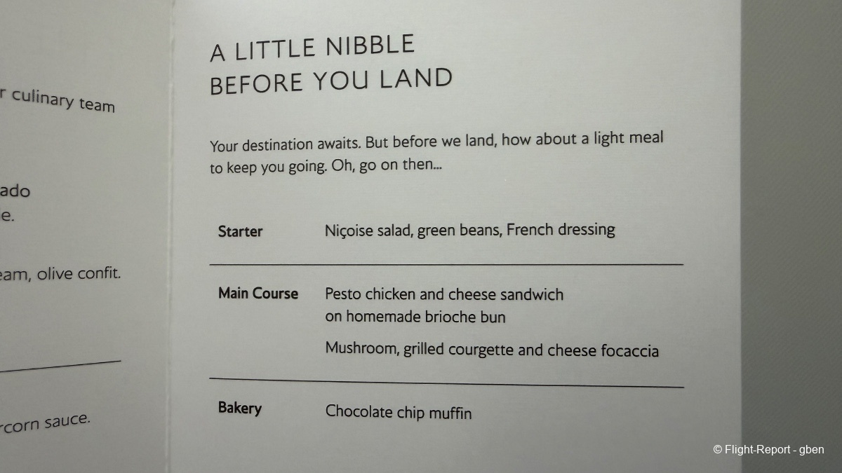 L'équipage m'a proposé la seconde prestation durant mon sommeil mais j'ai préféré la décliner, car je n'avais pas spécialement faim et je souhaitais aussi dormir encore un peu.