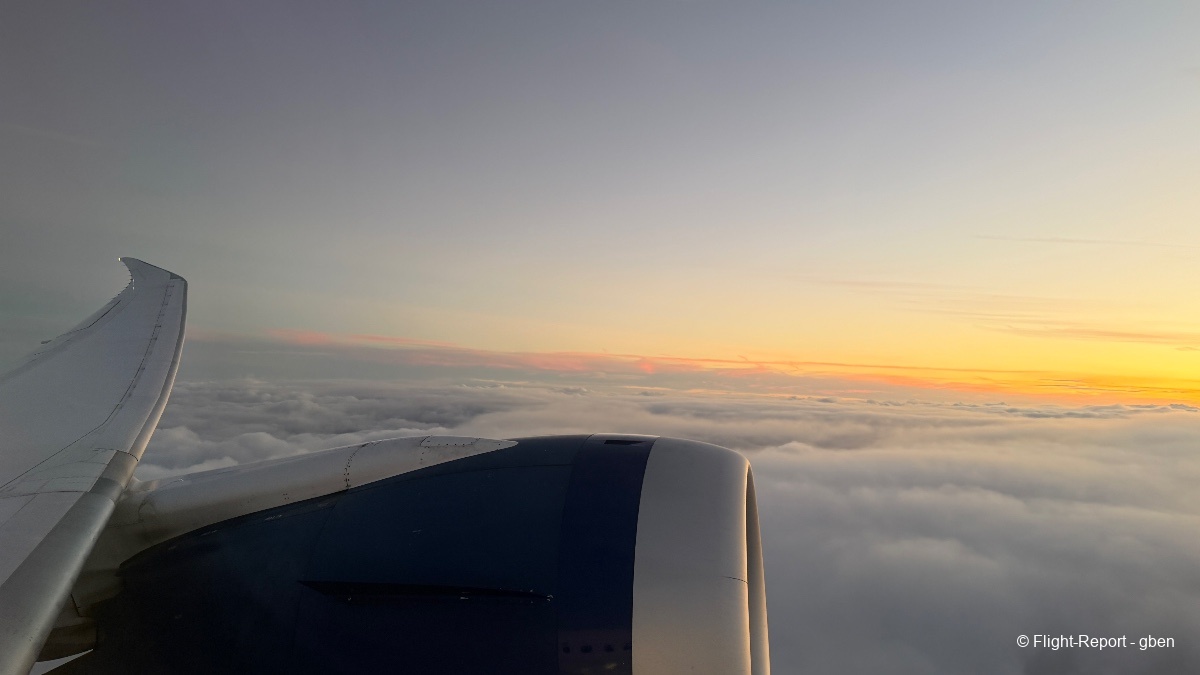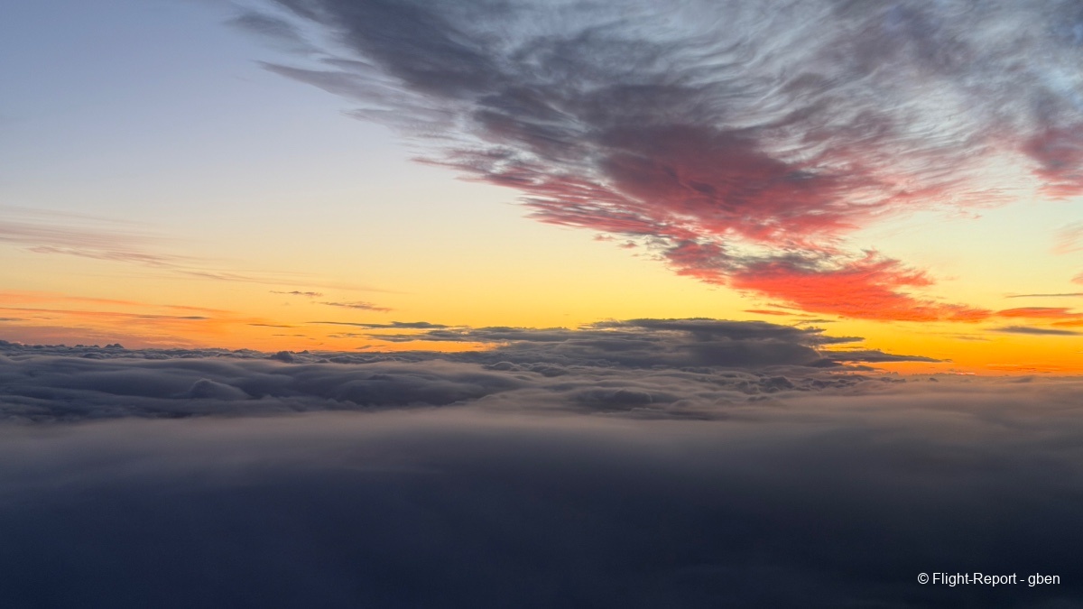 Je prends rarement des vols TATL partant aussi tard d'Europe, aussi j'aurai droit à un vol au deux tiers de nuit mais qui permet un beau coucher de soleil.