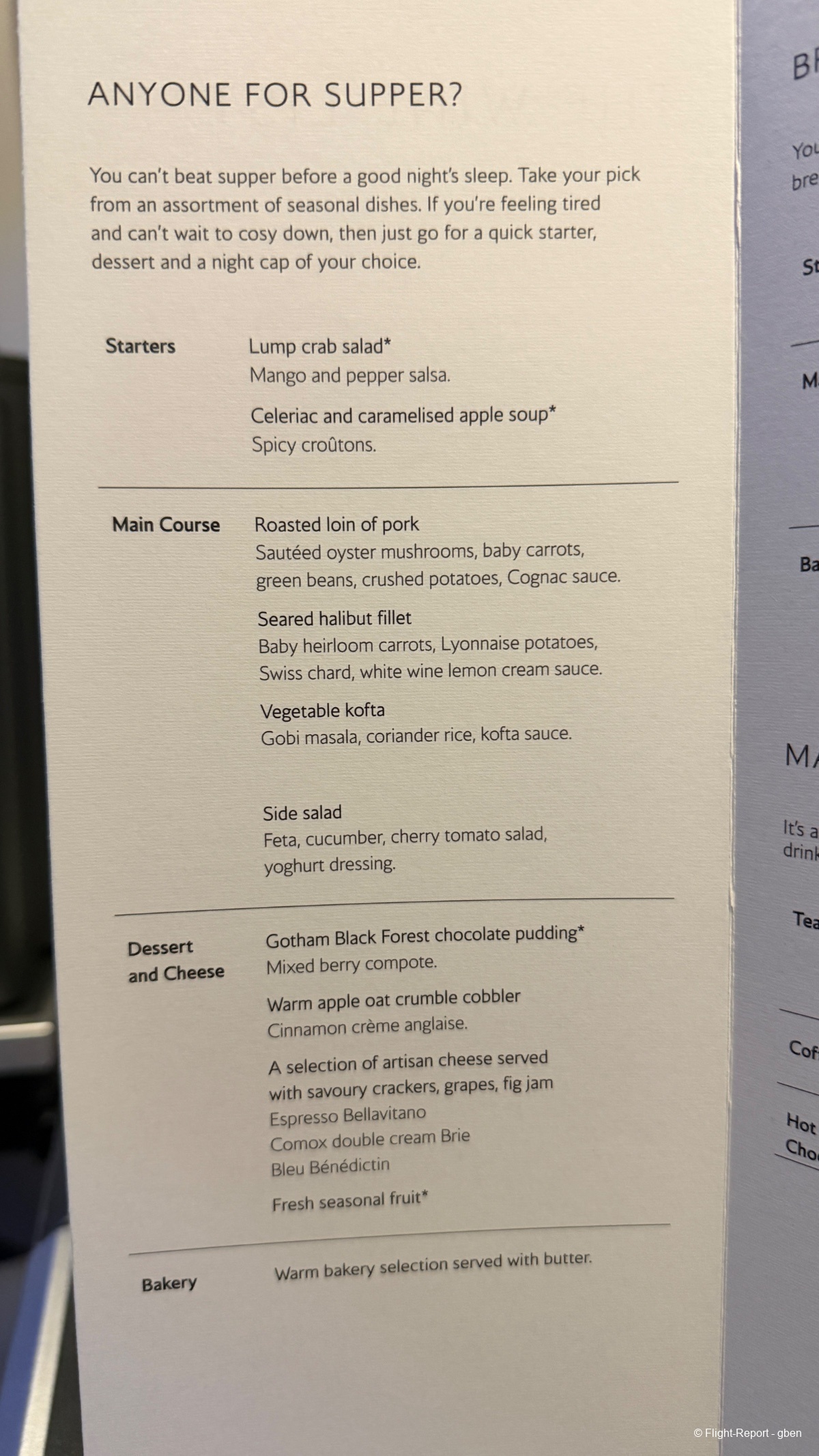 Pas de service d'apéritif ce soir - surement pour optimiser le temps de sommeil sur ce vol de nuit.