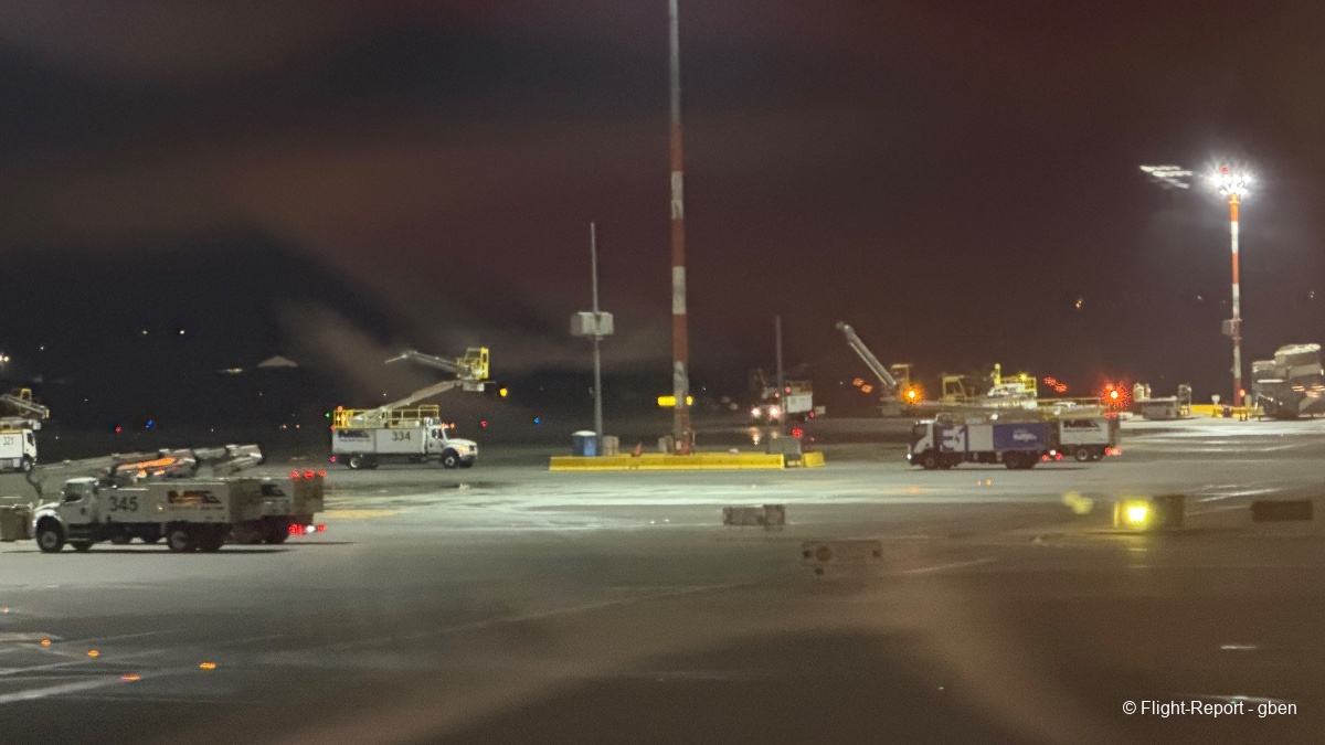Roulage en passant devant les équipes de dégivrage ; je n'y prêtais pas spécialement attention, mais on était attendu pour y passer nous aussi.