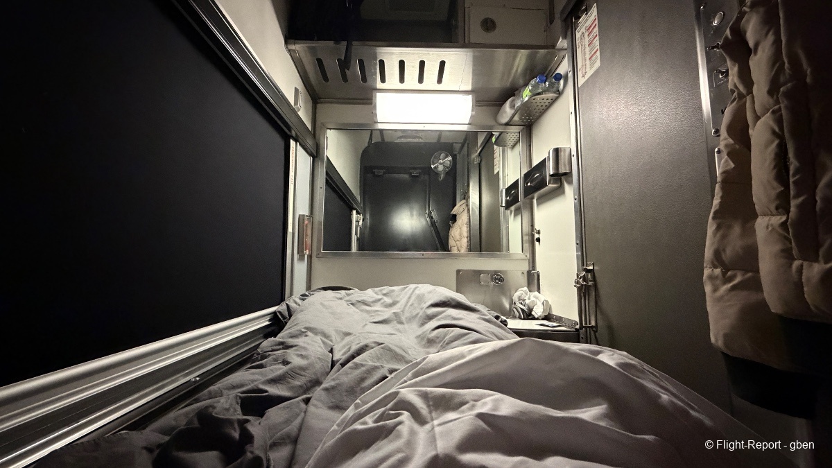 Le siège est confortable en mode lit ; la couverture agréable, la porte permet un meilleur isolement, la température de la cabine n'était pas trop élevée (si souvent le cas à bord).