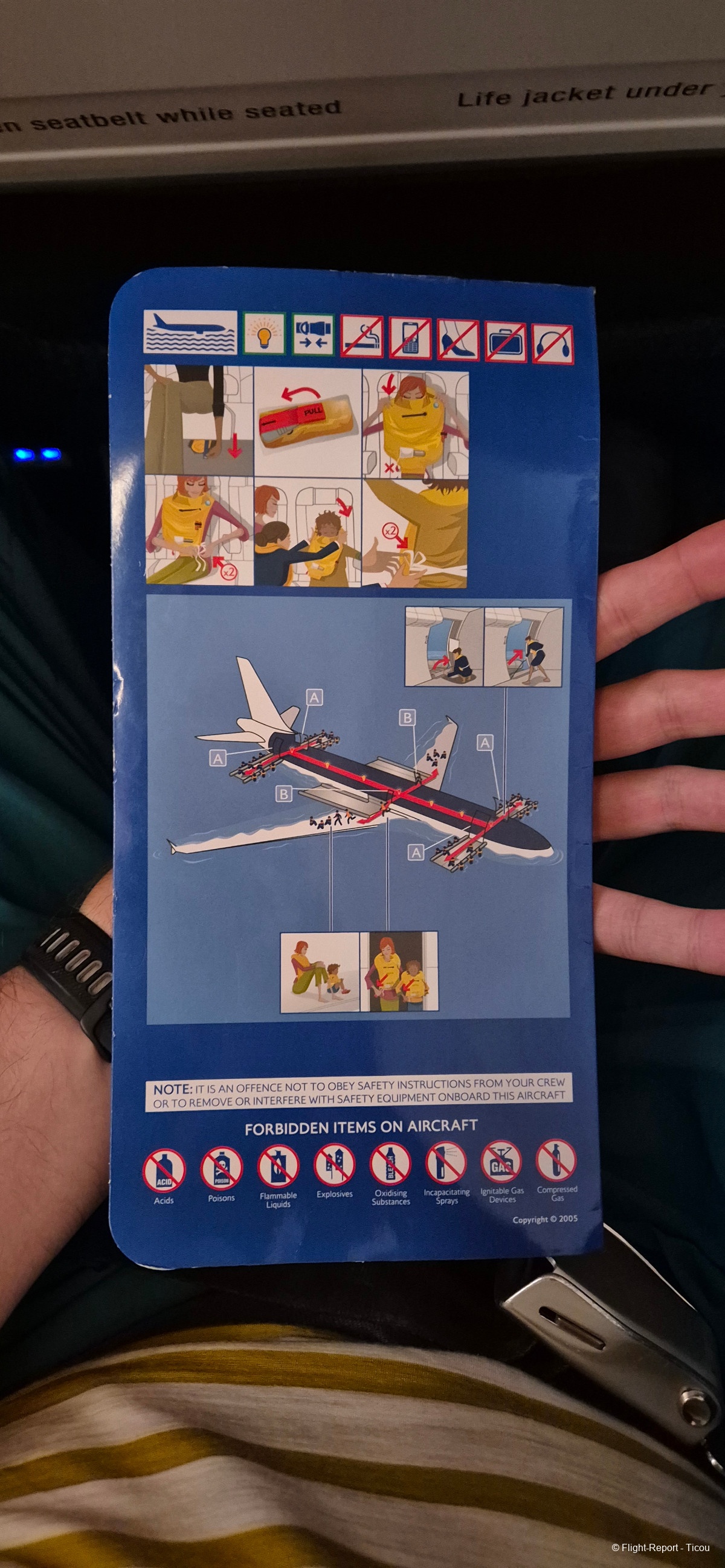 Pour ma part, j'essaie de dormir un petit peu, tout comme ma copine. Nous sommes évidemment en plein jetlag et nos cerveaux respectifs ne comprennent pas grand chose à ce qu'il leur arrive. Le vol est calme, surtout si on le compare avec le précédent entre Vegas et Londres. Et au moins, je n'ai évidemment plus le même passager devant moi, quel bonheur. Alors qu'il est 19h55 en Suisse, soit après un peu plus de cinquante minutes de vol, le poste de pilotage annonce notre arrivée à Genève dans dix petites minutes. Il est encore temps de prendre en photo les consignes de sécurité et les journaux de bord.