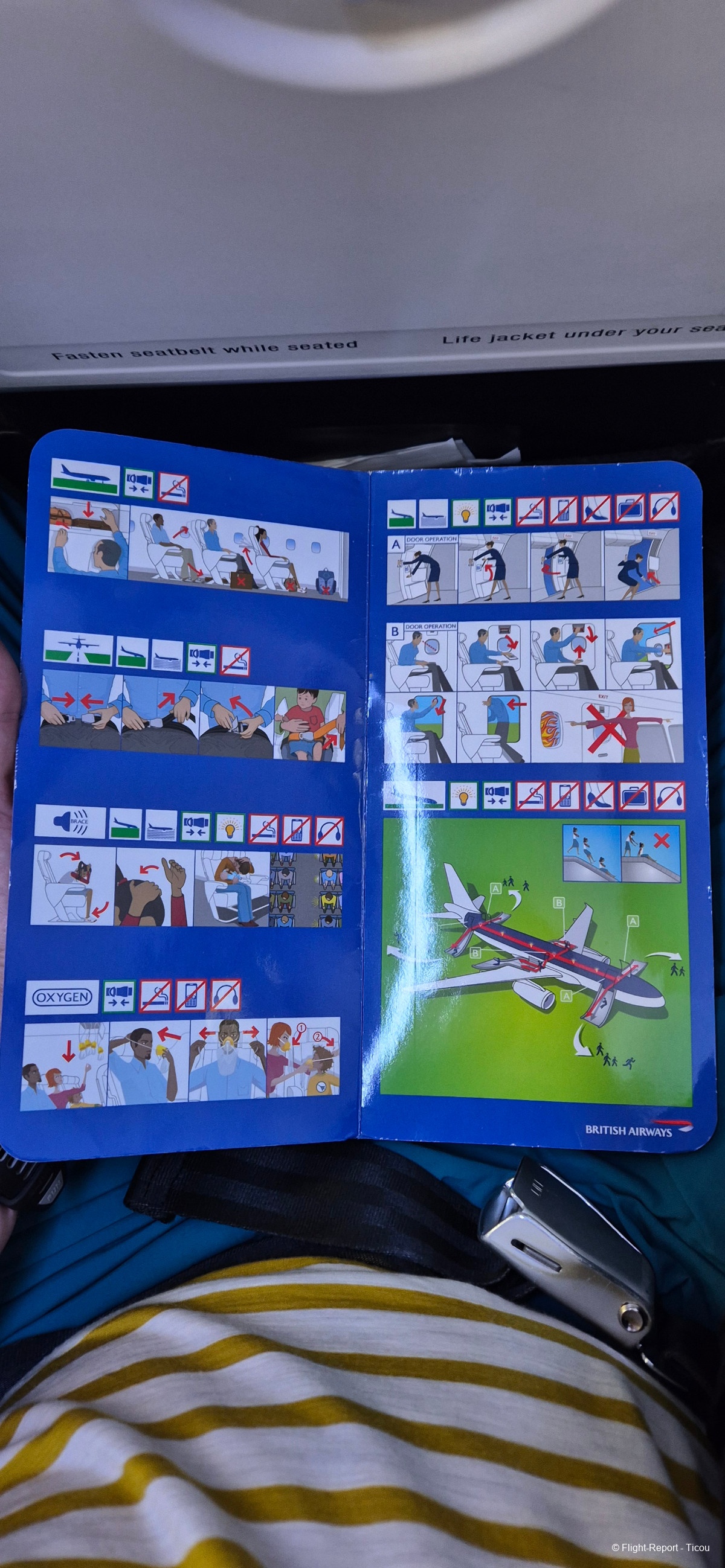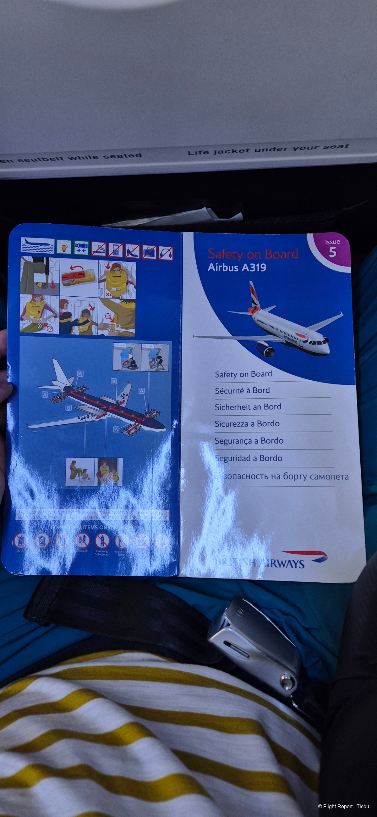 L'accueil à bord est sobre. Nous gagnons rapidement l'arrière de l'appareil puisque le système nous a attribué les places 21E et F. Notre rangée est encore vide. La cabine ressemble absolument à toutes celles de British Airways que j'ai eu le droit de voir durant les quelques rotations effectuées avec eux au cours de ma vie. On ne ressent pas à première vue que notre A319 a plus qu'un quart de siècle.