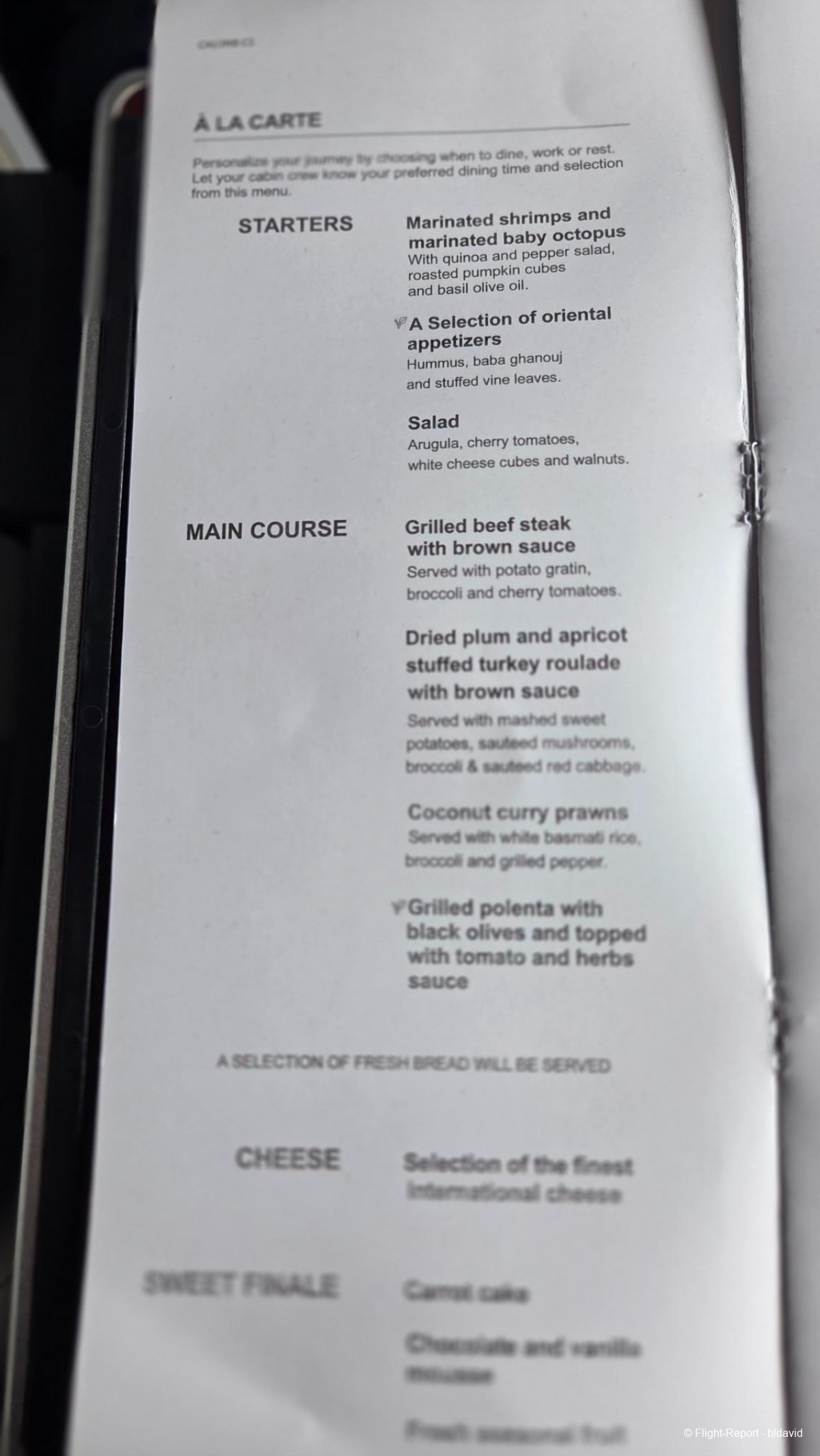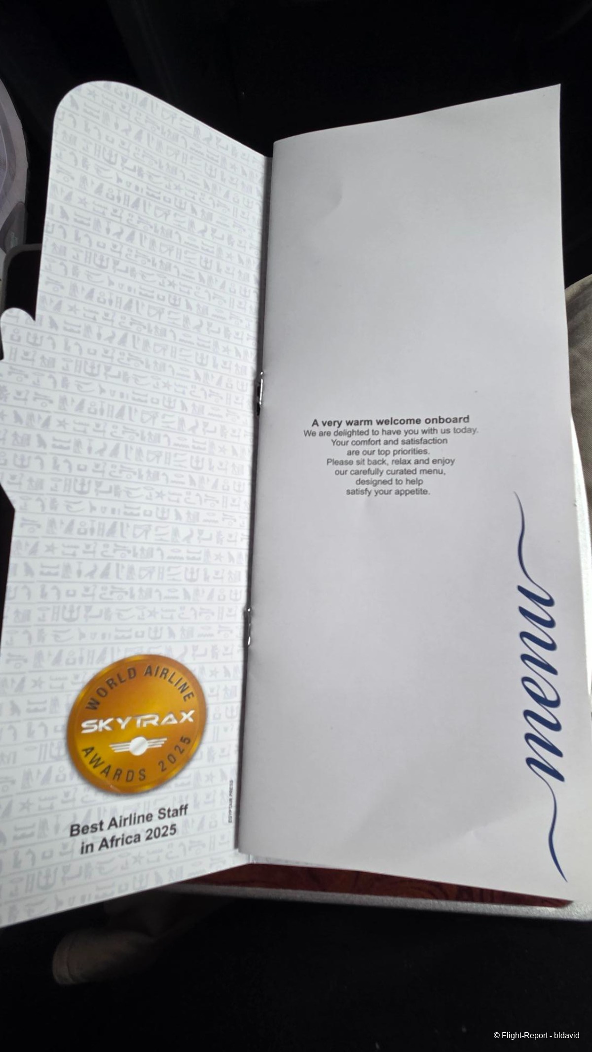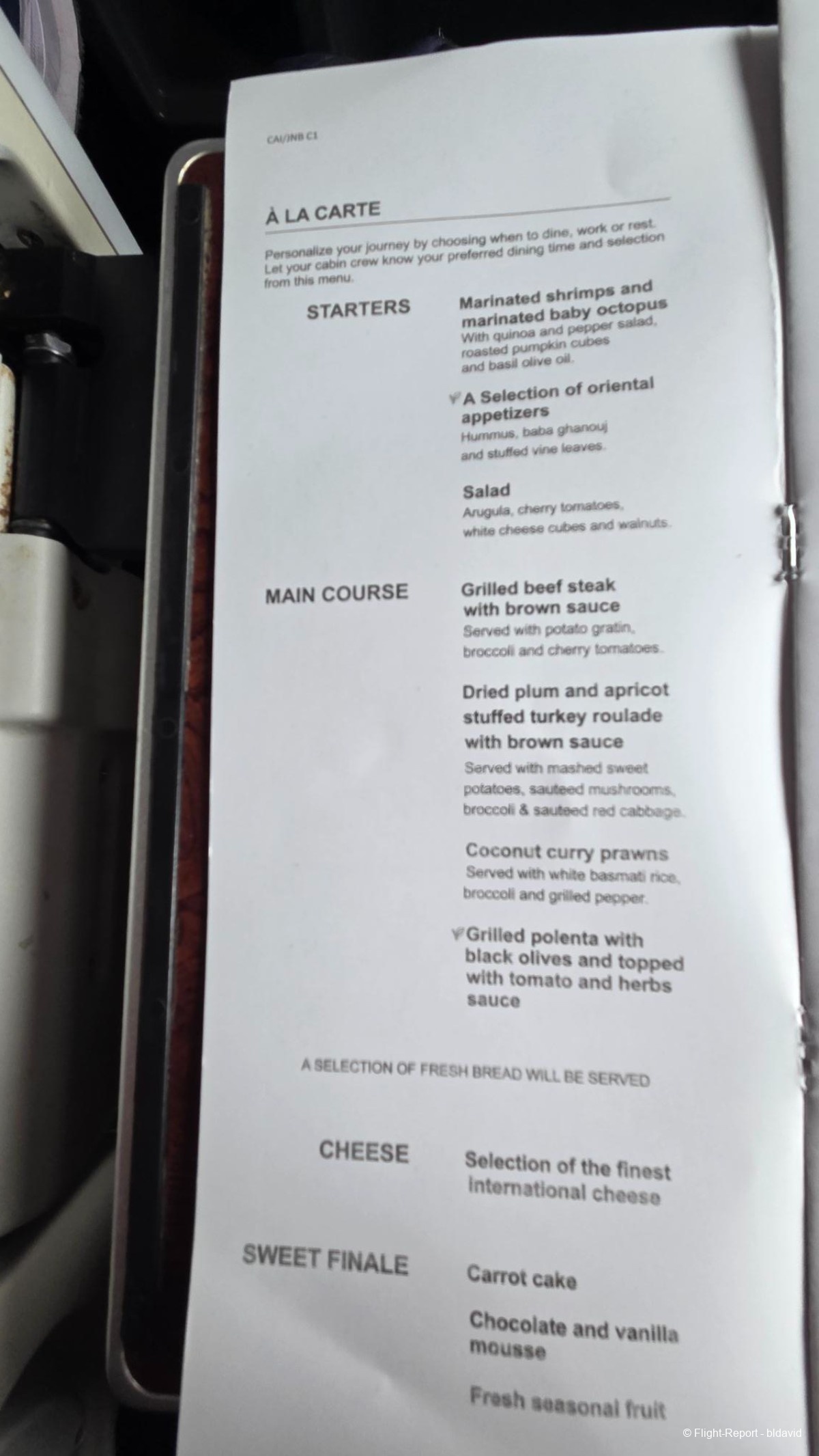 Lunch menu was distributed during breakfast. It was a bit confusing. The menu said: "Personalize your journey by choosing when to dine, work and rest. Let your cabin crew know your preferred dining time and selection from this menu." So there is dine one demand on-board Egyptair? OK…