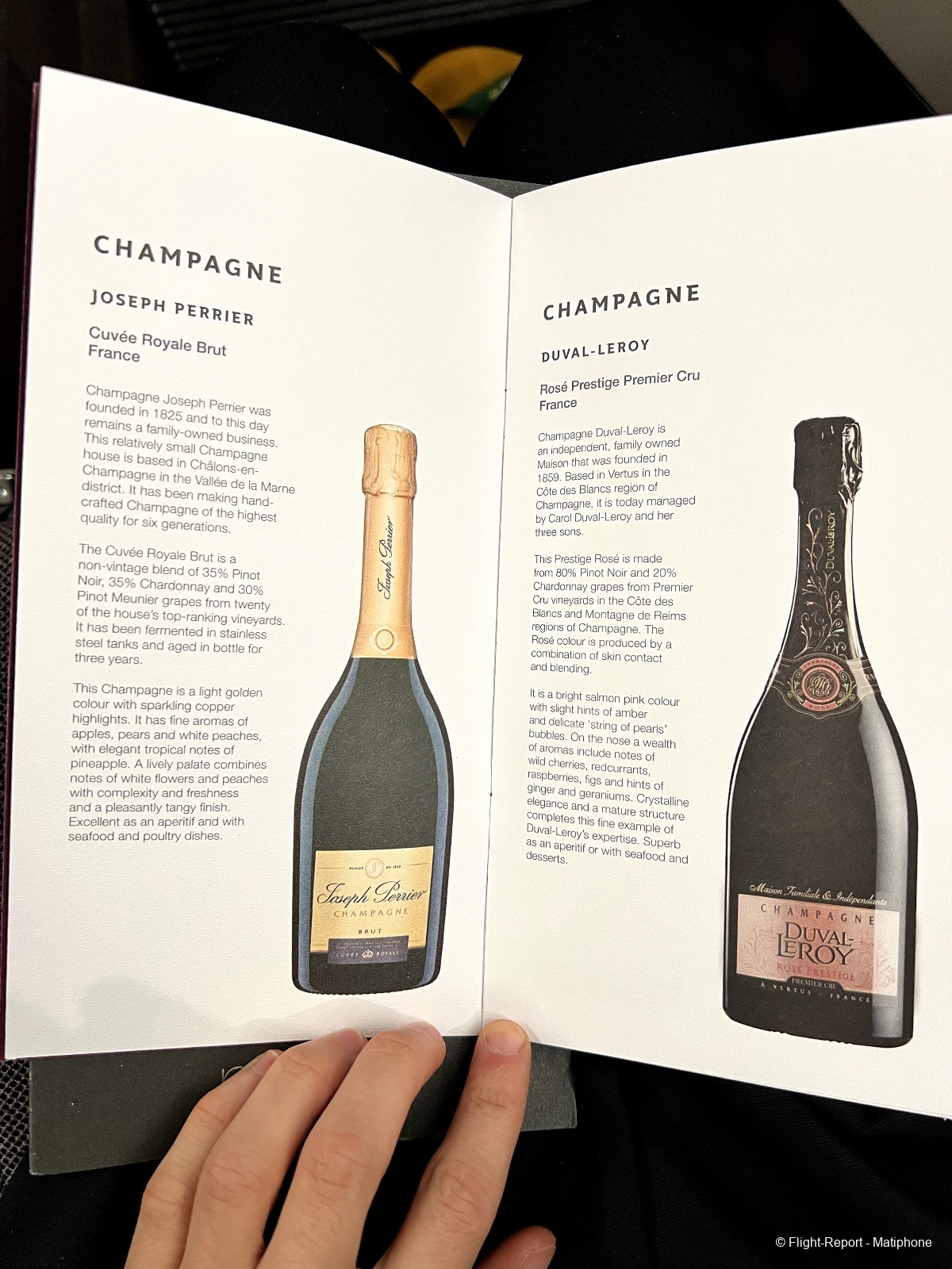 Une fois en l'air, place au véritable apéritif avec ce Duval-Leroy rosé. Et oui, le champagne n'était pas servi au sol en France.