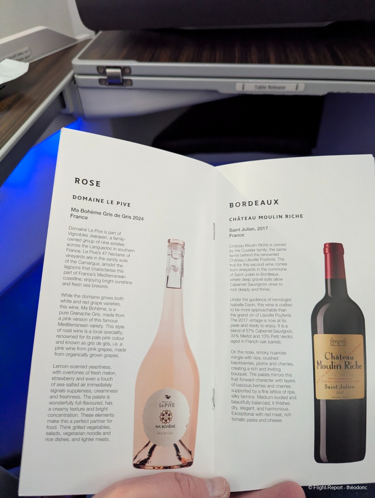 Peu après le décollage, le champagne est servi. L'hotesse sera aux petits soins pour moi durant tout le vol.