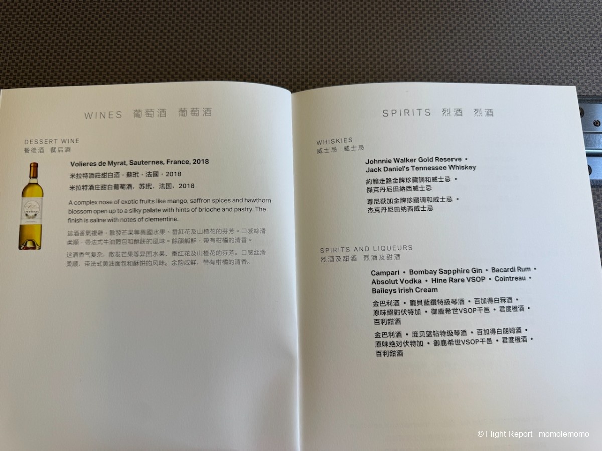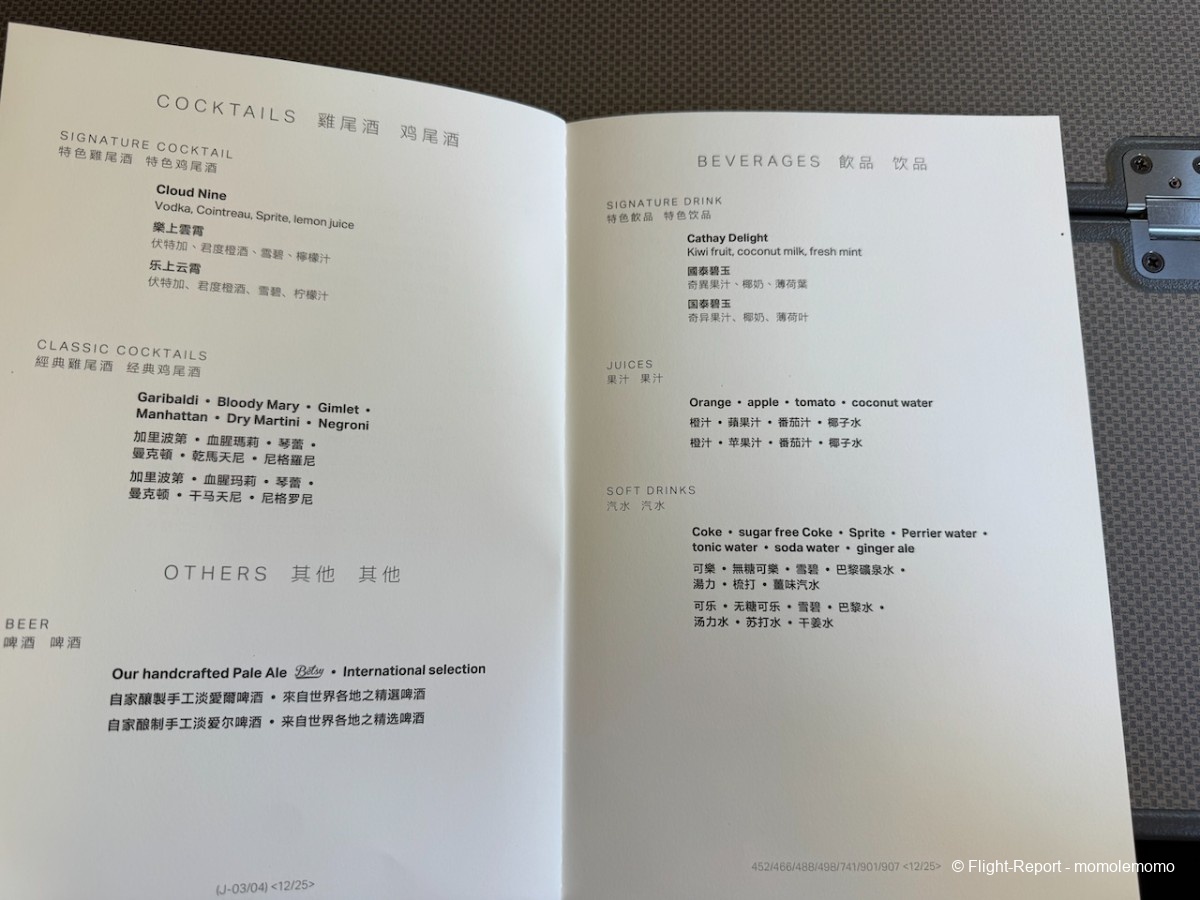 Puis un Cathay Delight, boisson signature de Cathay Pacific.