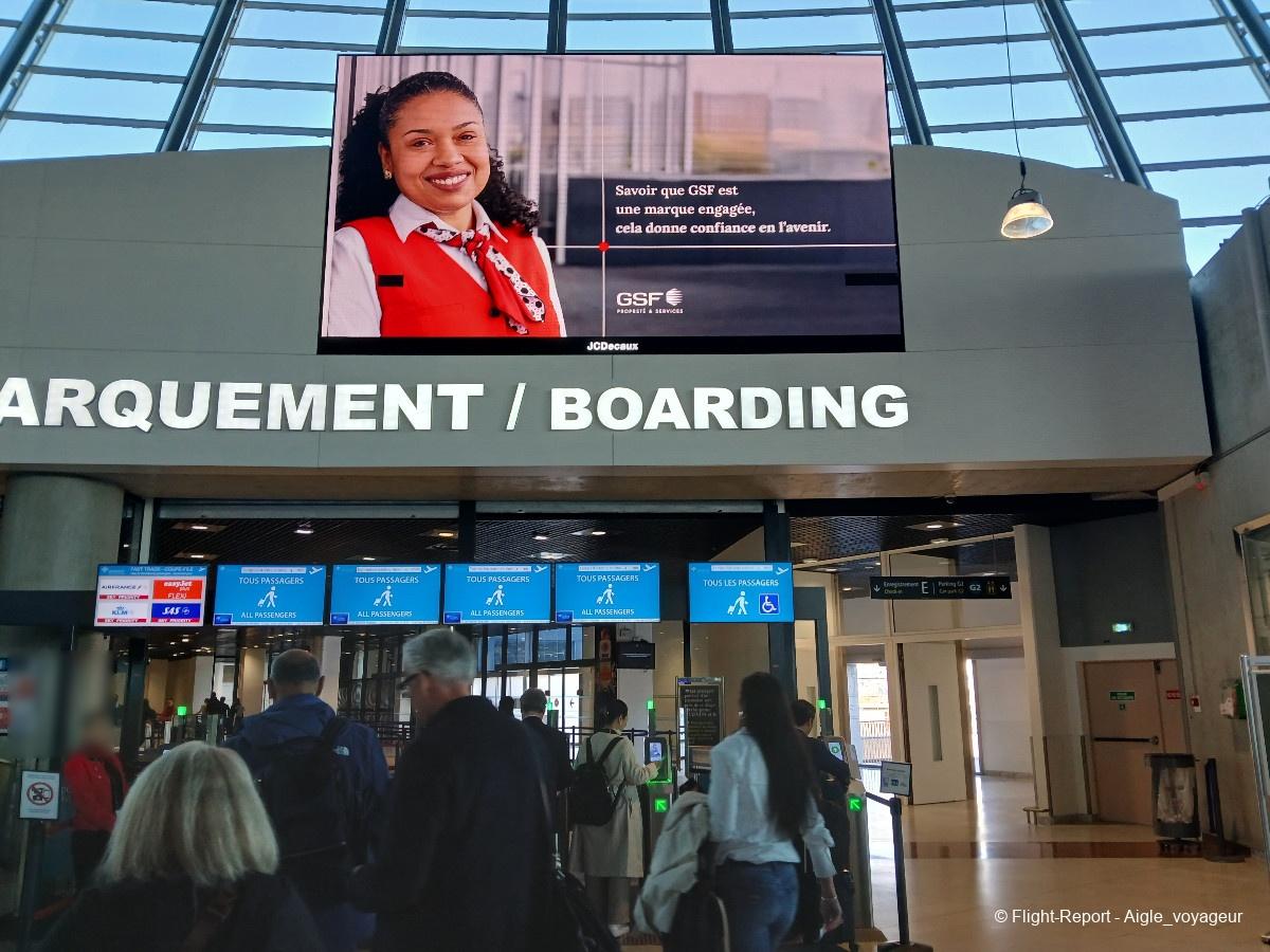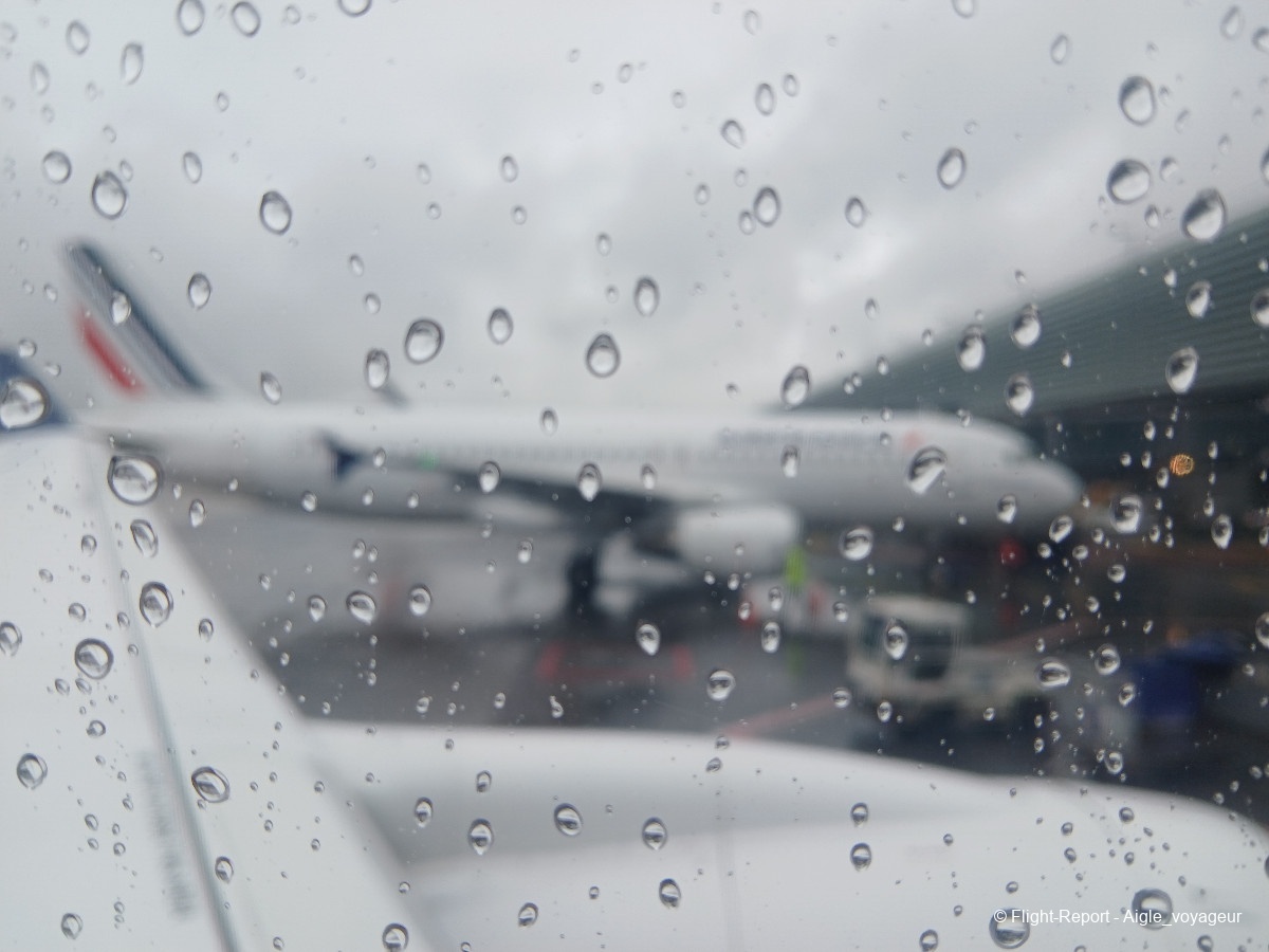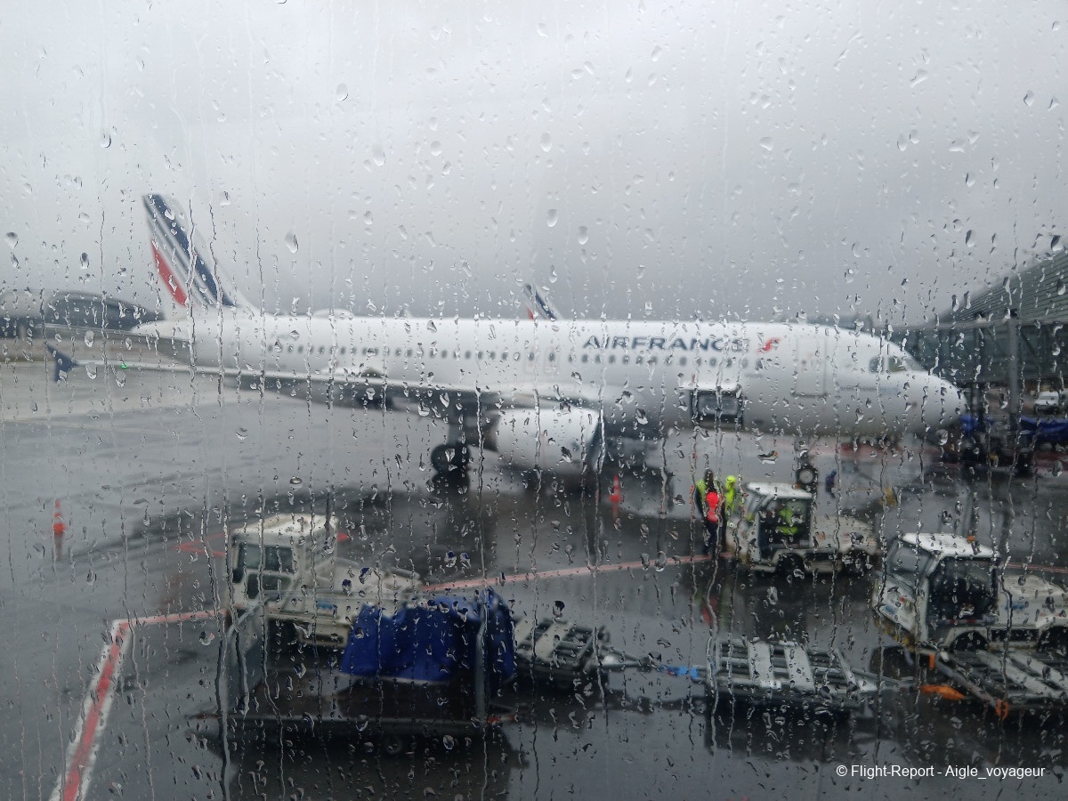 Passage obligatoire par bus, sous la pluie parisienne, pour arriver au bon terminal.
