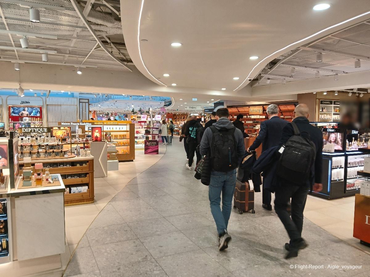 Direction, les contrôles de sécurité. 7 minutes seront nécessaires pour arriver airside, devant l'incontournable duty-free.
