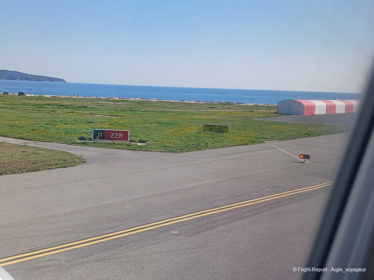 Et décollage rapide sur la piste 22R ; l'autre piste, habituellement dédiée aux décollages, étant encore en travaux.