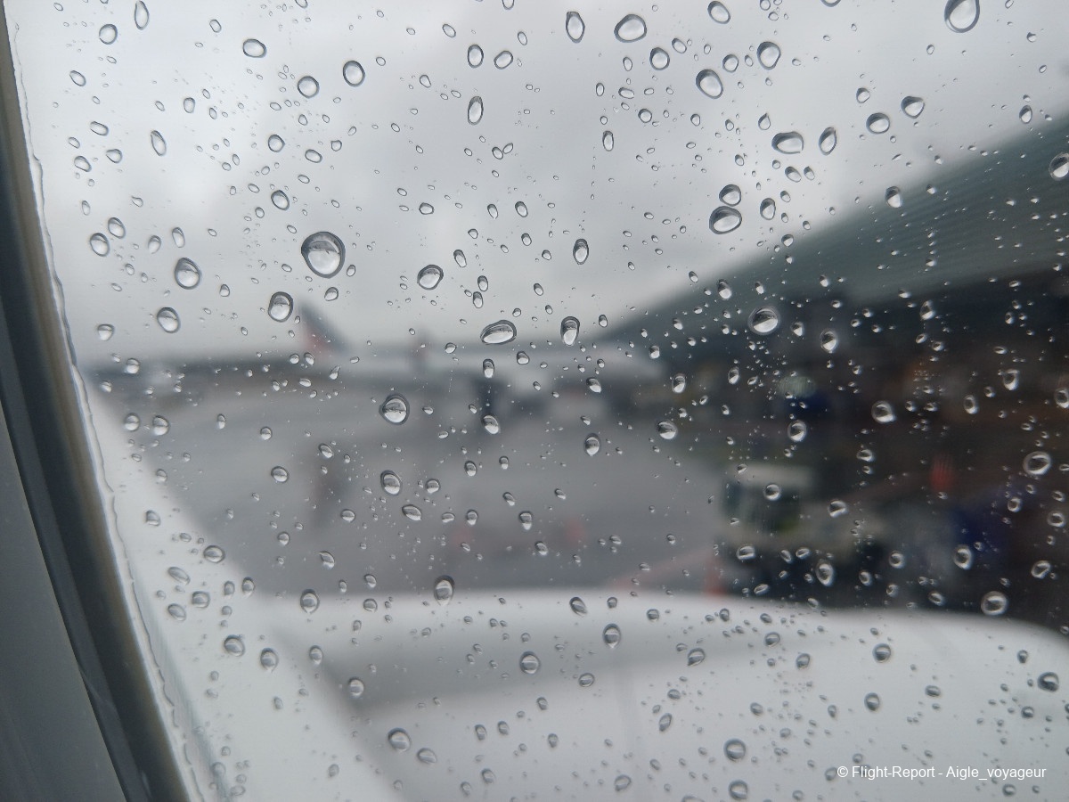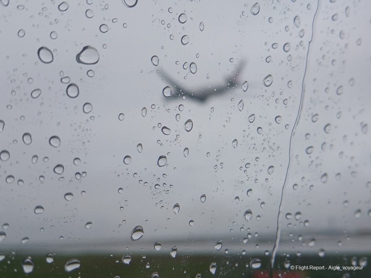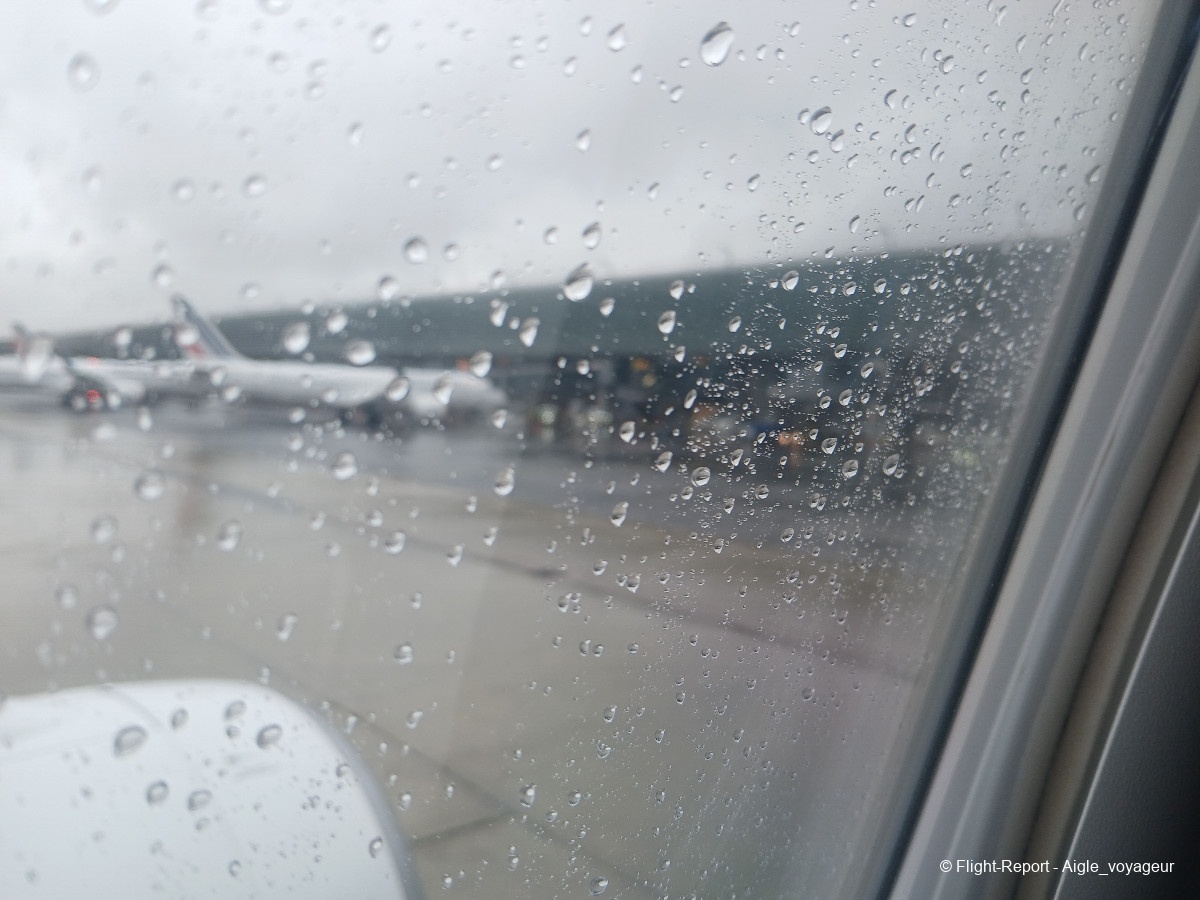 Butter touchdown malgré la pluie. Nous laisserons passer un confrère Dreamliner avant de rejoindre notre parking.