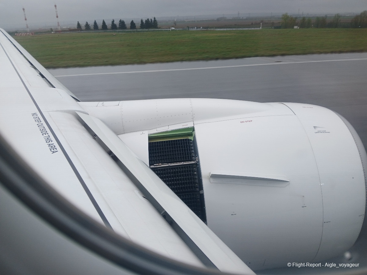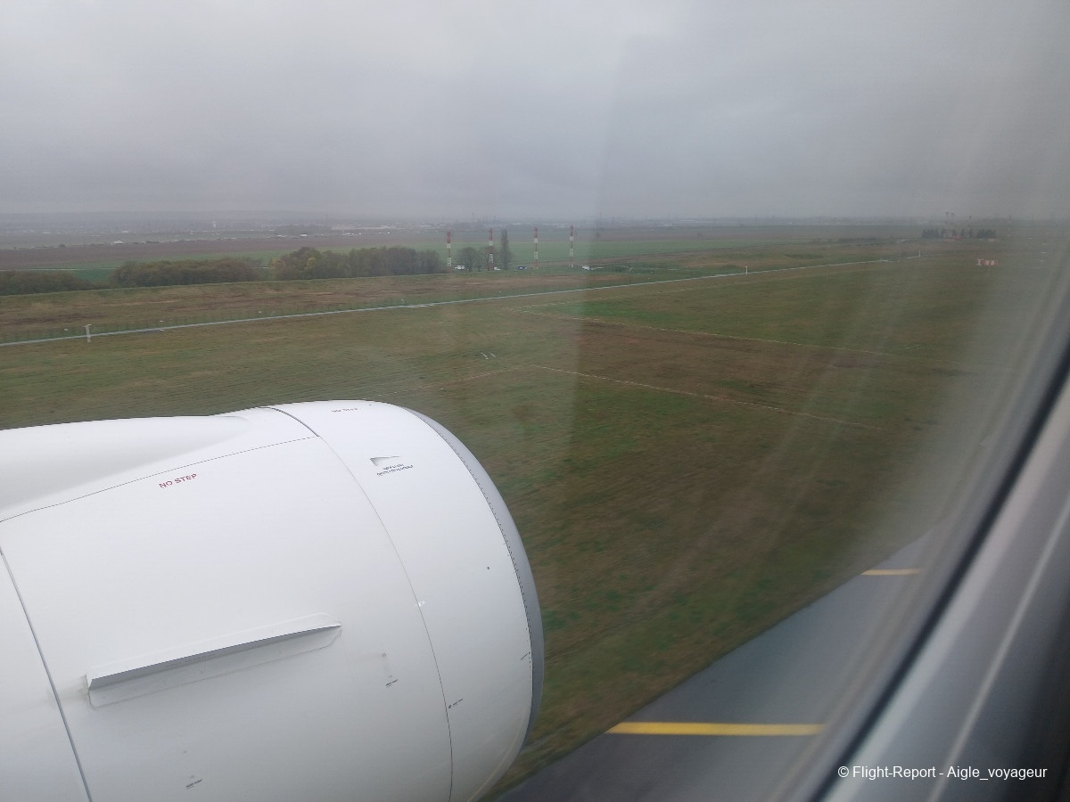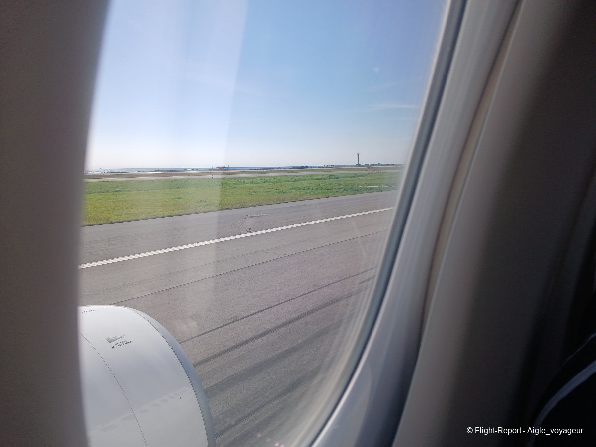 Butter touchdown malgré la pluie. Nous laisserons passer un confrère Dreamliner avant de rejoindre notre parking.