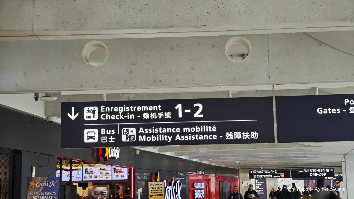 L'enregistrement d'Air Austral se trouve toujours tout au bout du terminal dans la zone 1. D'ailleurs, Air Austral ne devait rester que 18 mois dans le T2B, mais après tout ce temps, ils ne sont toujours pas revenus au 2C…